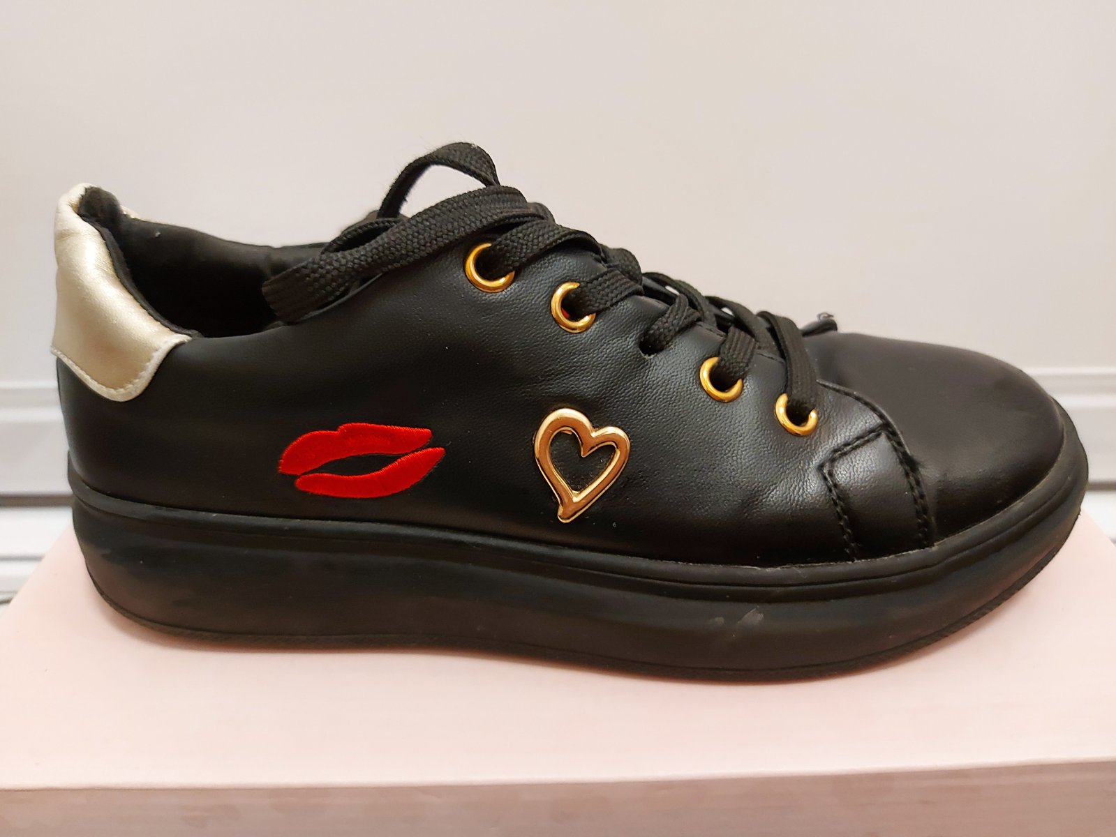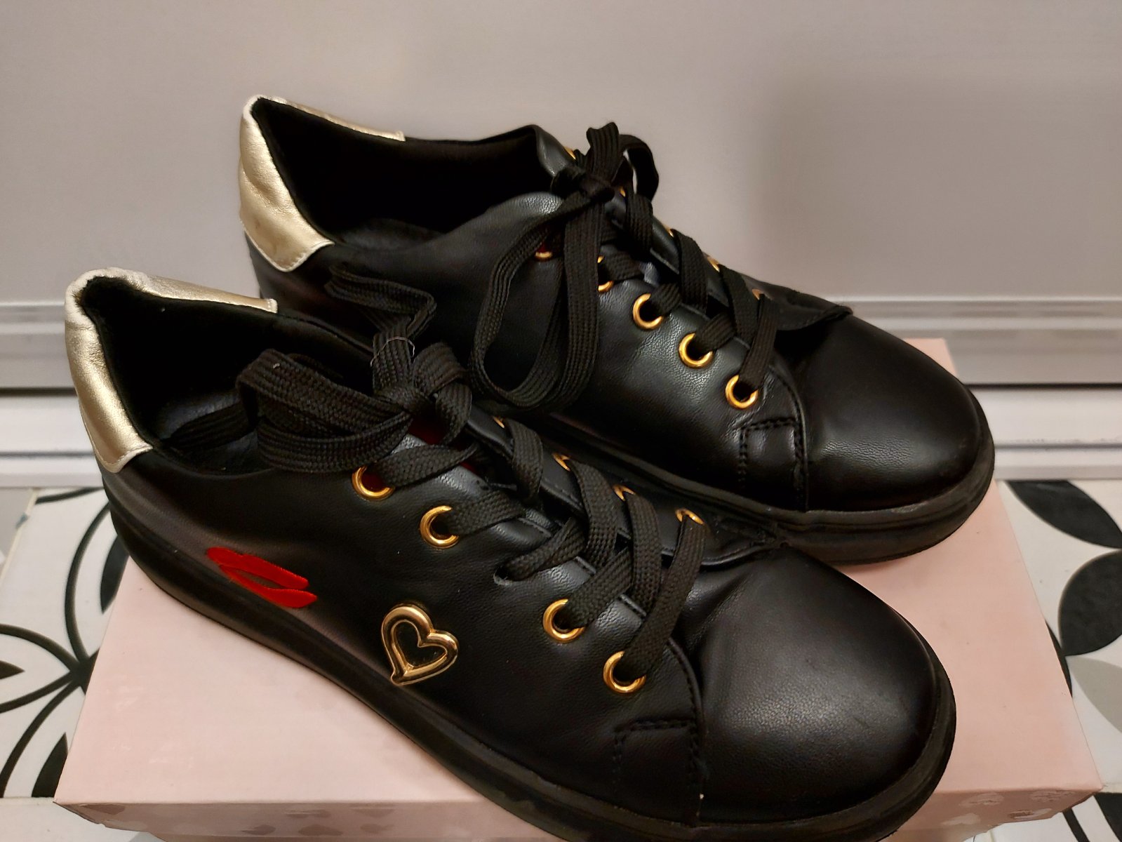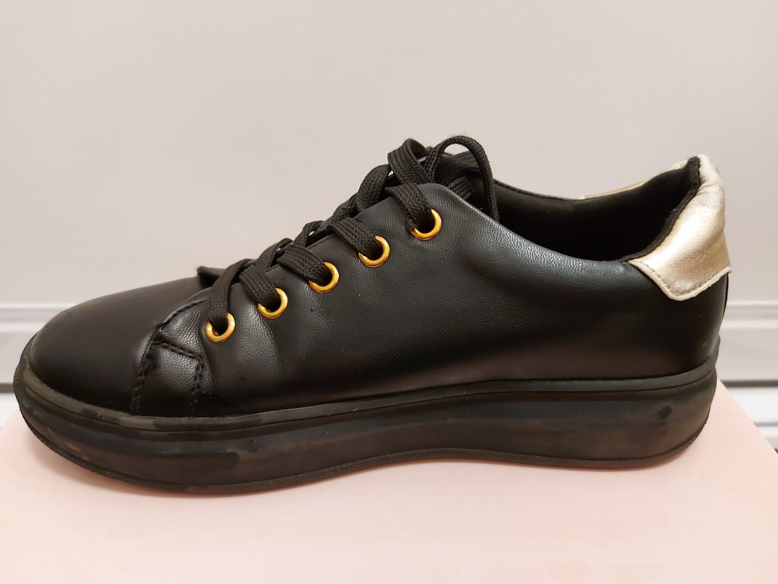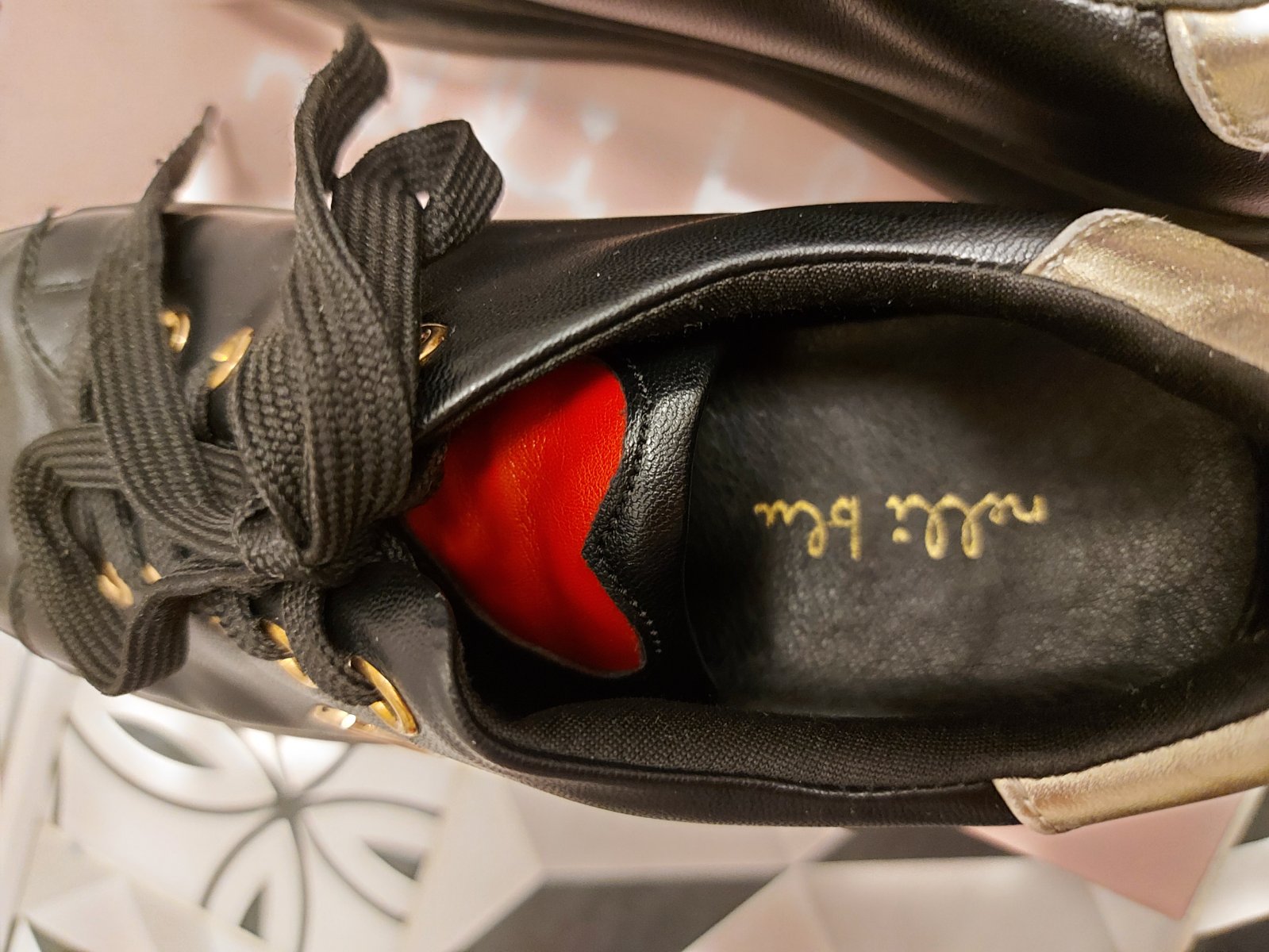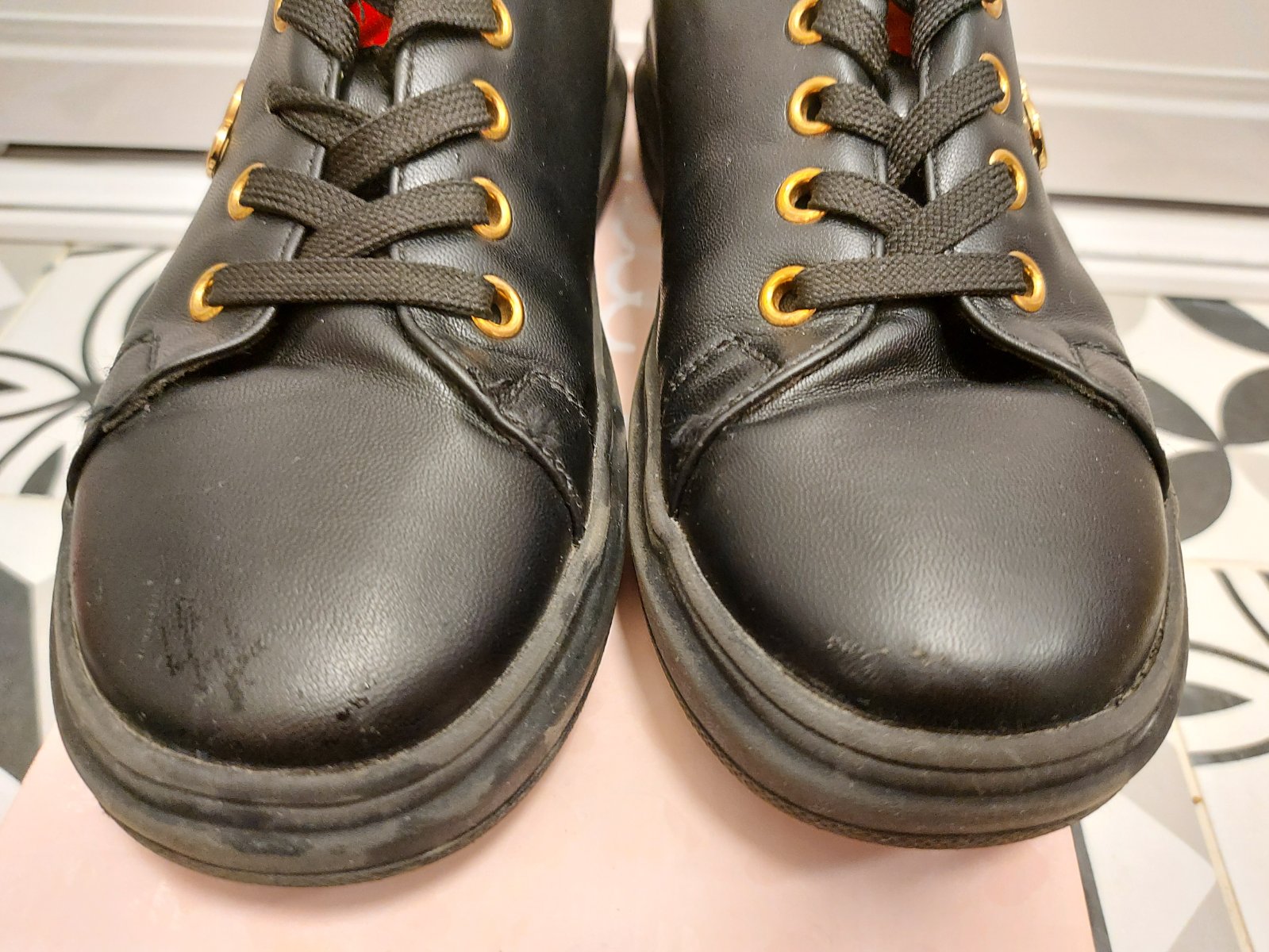 Koženeé prechodné topánky pre slečnu, so zlatými a ozdobnými detailami, na šnurovanie, bežne známky nosenia, viď foto. Drobné škrabance vyrieši krém na topánky, inak sú v naozaj dobrom stave a este posluzia.