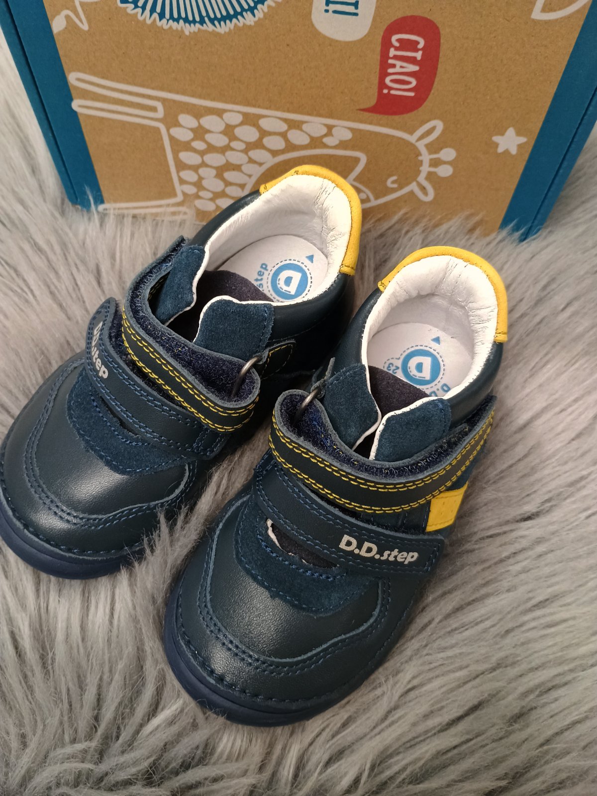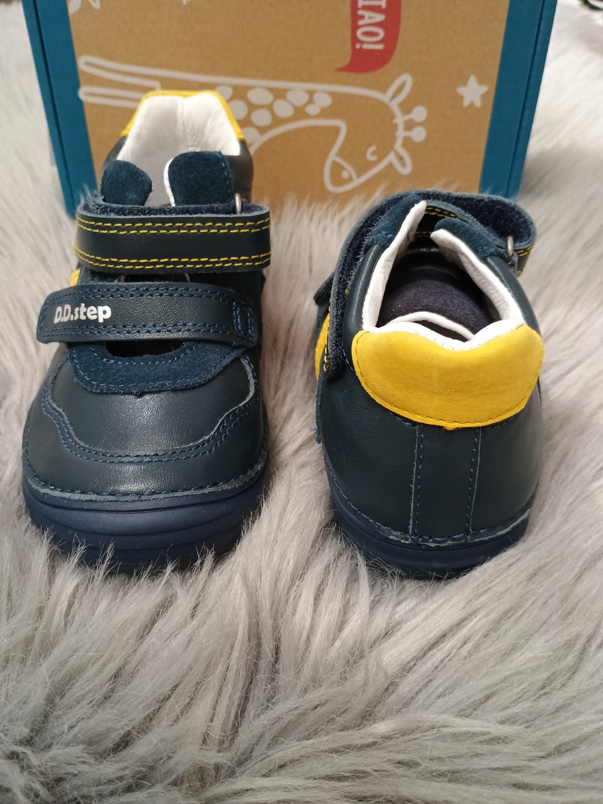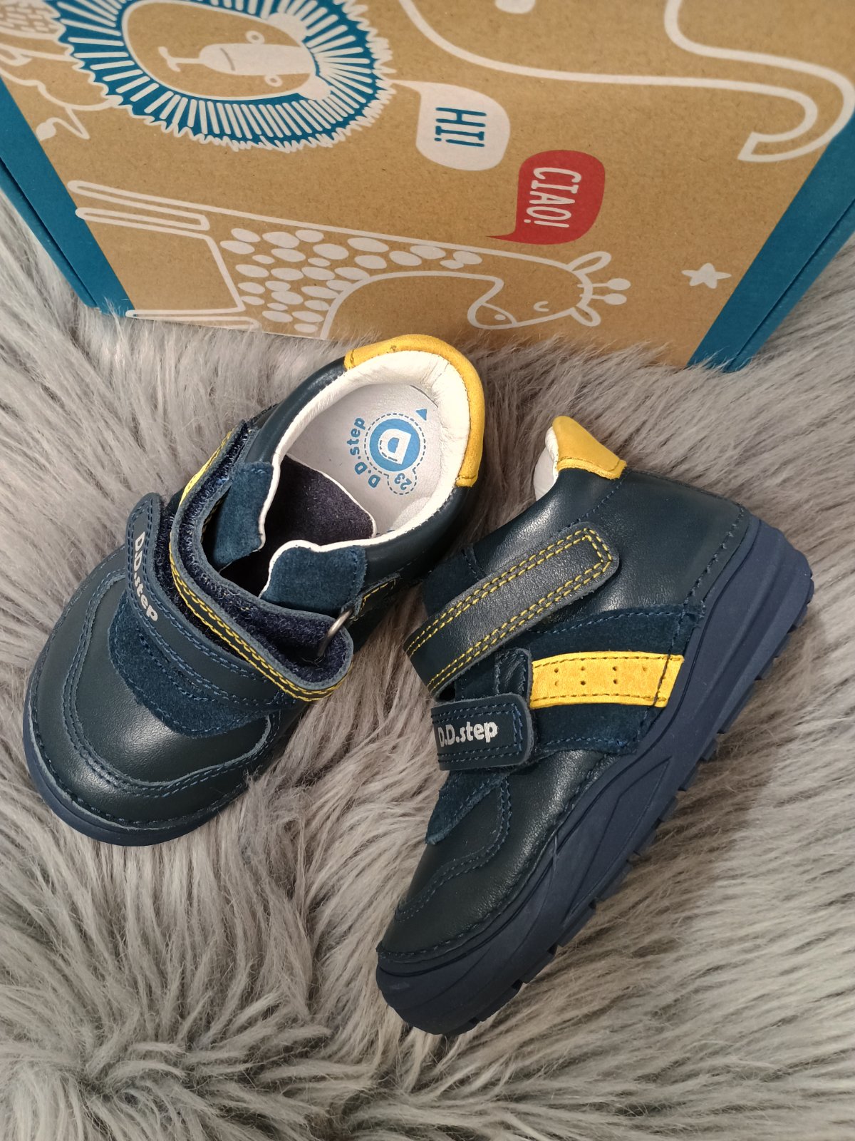 Detské kožené topánky určené pre chlapčeka od značky DDstep. Zapínanie topánok je na 2 suché zipsy, čo ocenia deti aj ich rodičia pre jednoduchosť a rýchlosť pri obúvaní. Jedná sa o pohodlné topánky s vyberateľnou vložkou. Topánky sú čiastočne vodeodolné. Ide o originálny model na každodenné nosenie. Topánky sú vyššie a ladené do modrej farby so žltými detailmi.