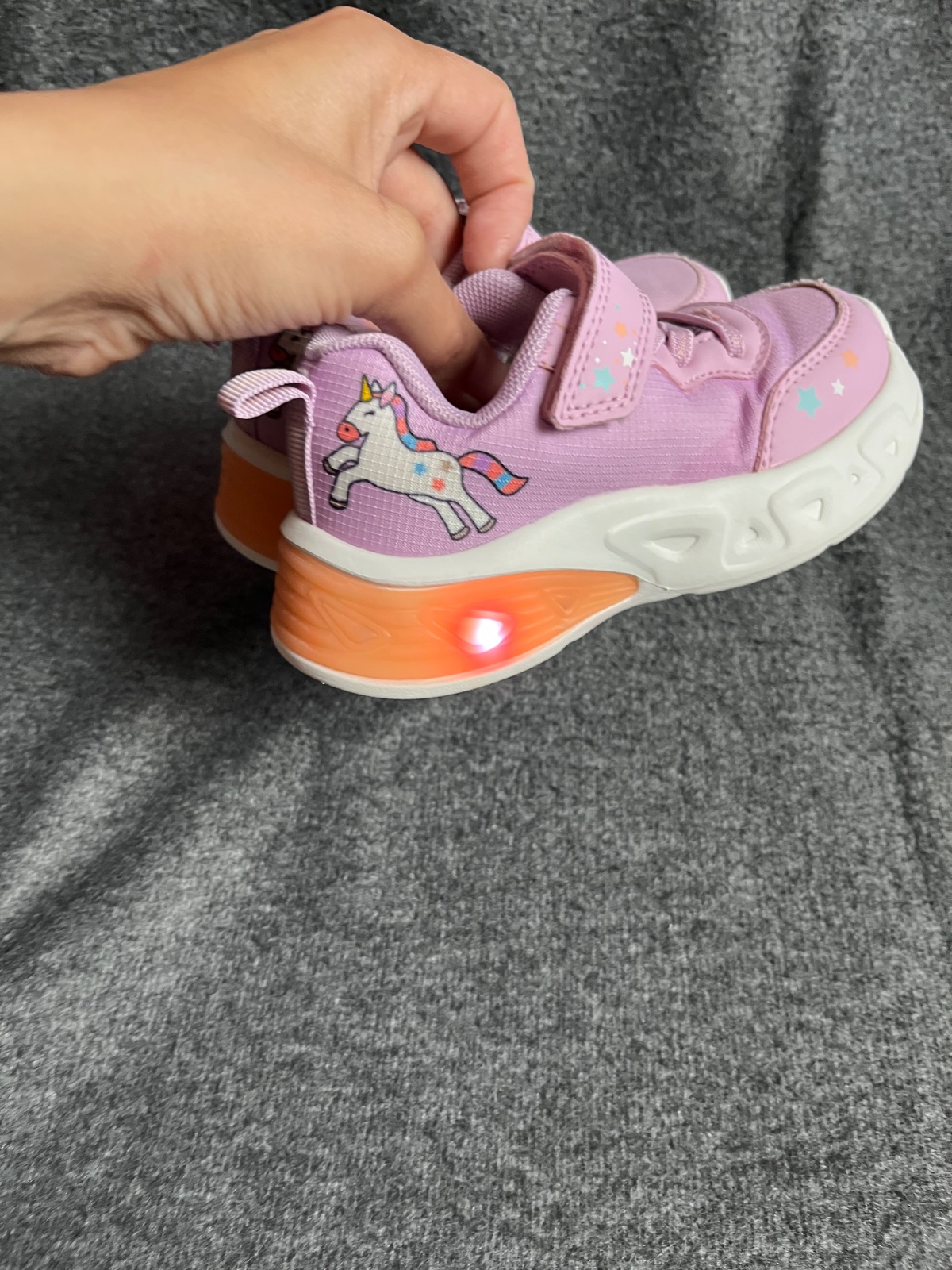 Blikajúce tenisky nosene jednu sezónu. Bez poškodení vo veľmi peknom stave len z vnútornej strany dolu je jeden fliačik. Pri nosení nevidno. Veľkosť 25. VD cca 16,7cm