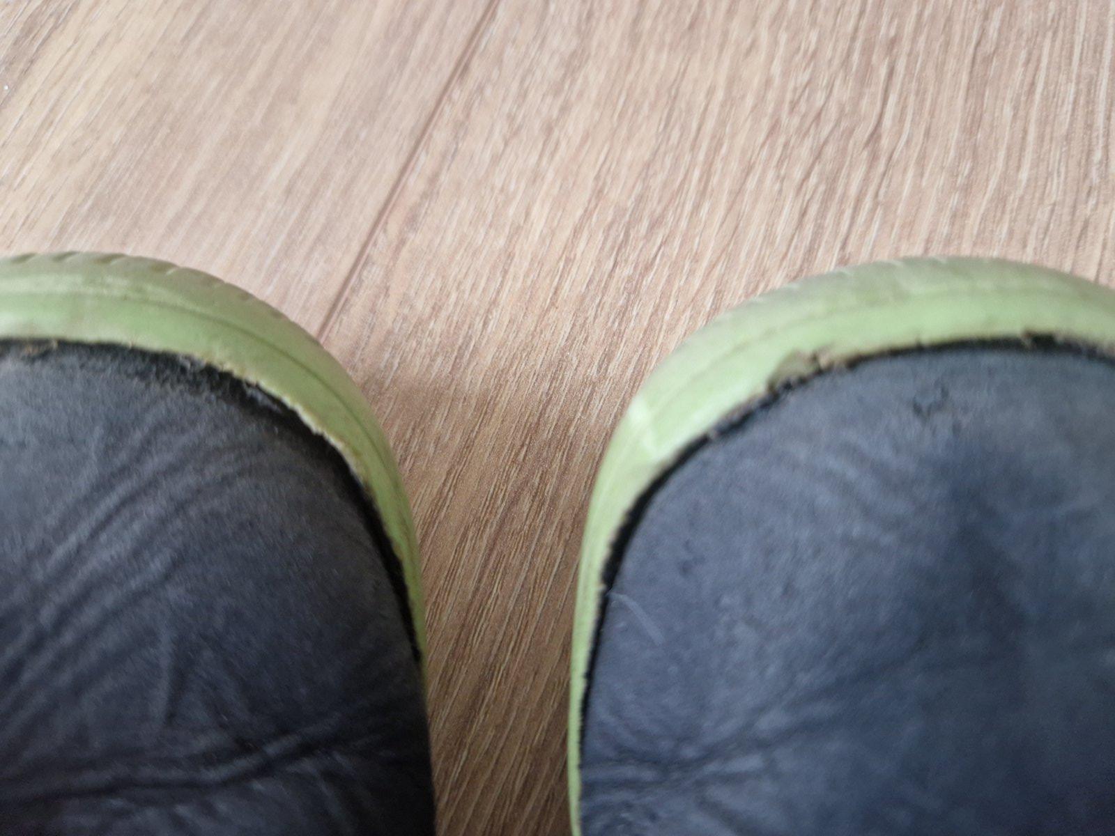 Na špičke je trochu odštiepená guma viď.foto, sú už schodené a niektoré miesta sú ošúchané.