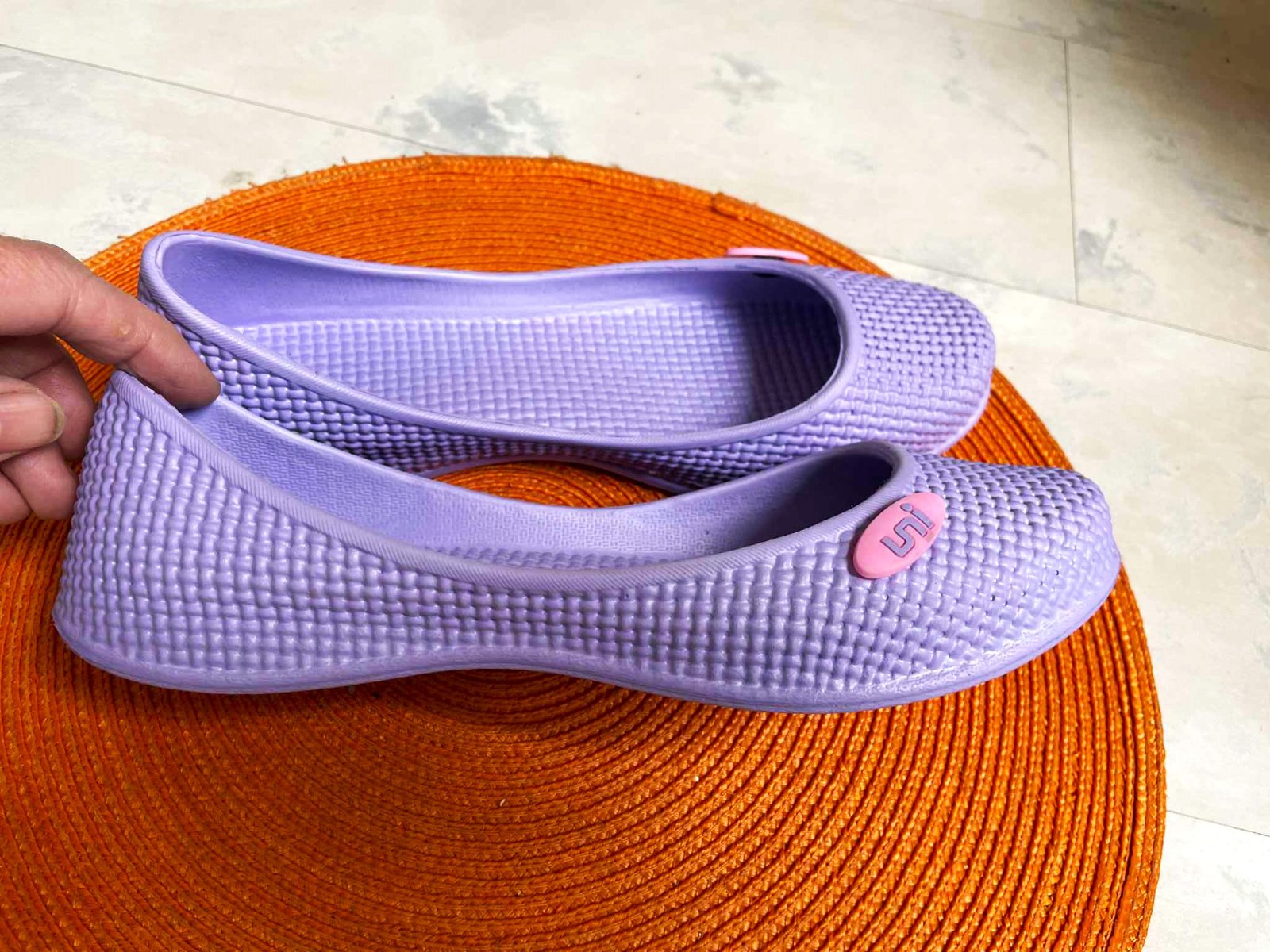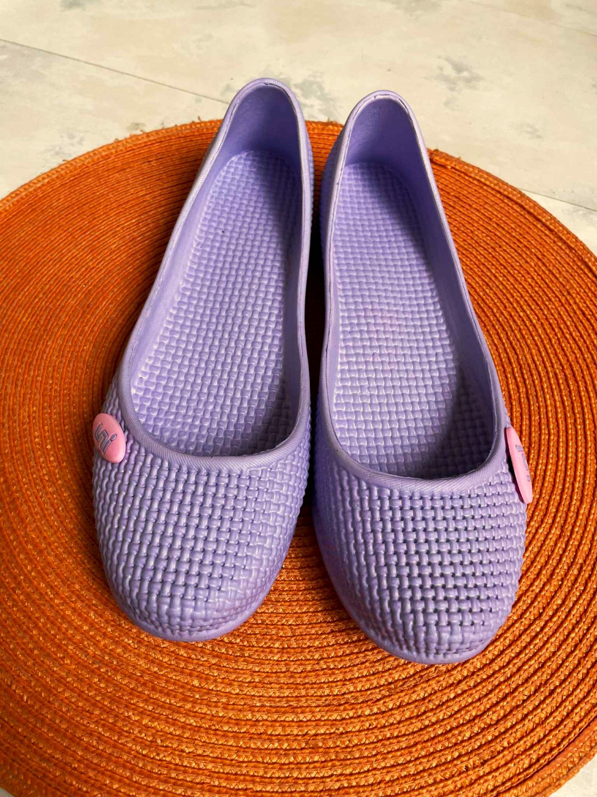 min.nosené gumené balerínky,farba je levandulovo - fialová - krásna,sýta,boky pekne vykrojené,veľmi trendové