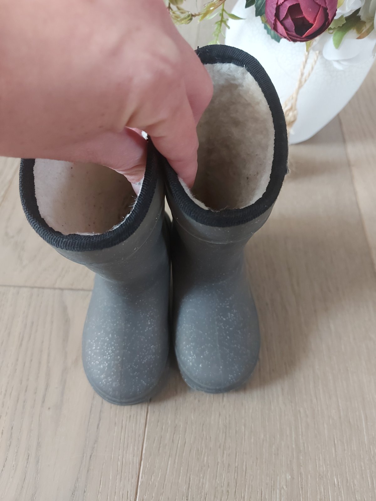 Super teplé gumáky v super stave, farba tmavošedá s trblietkami.
