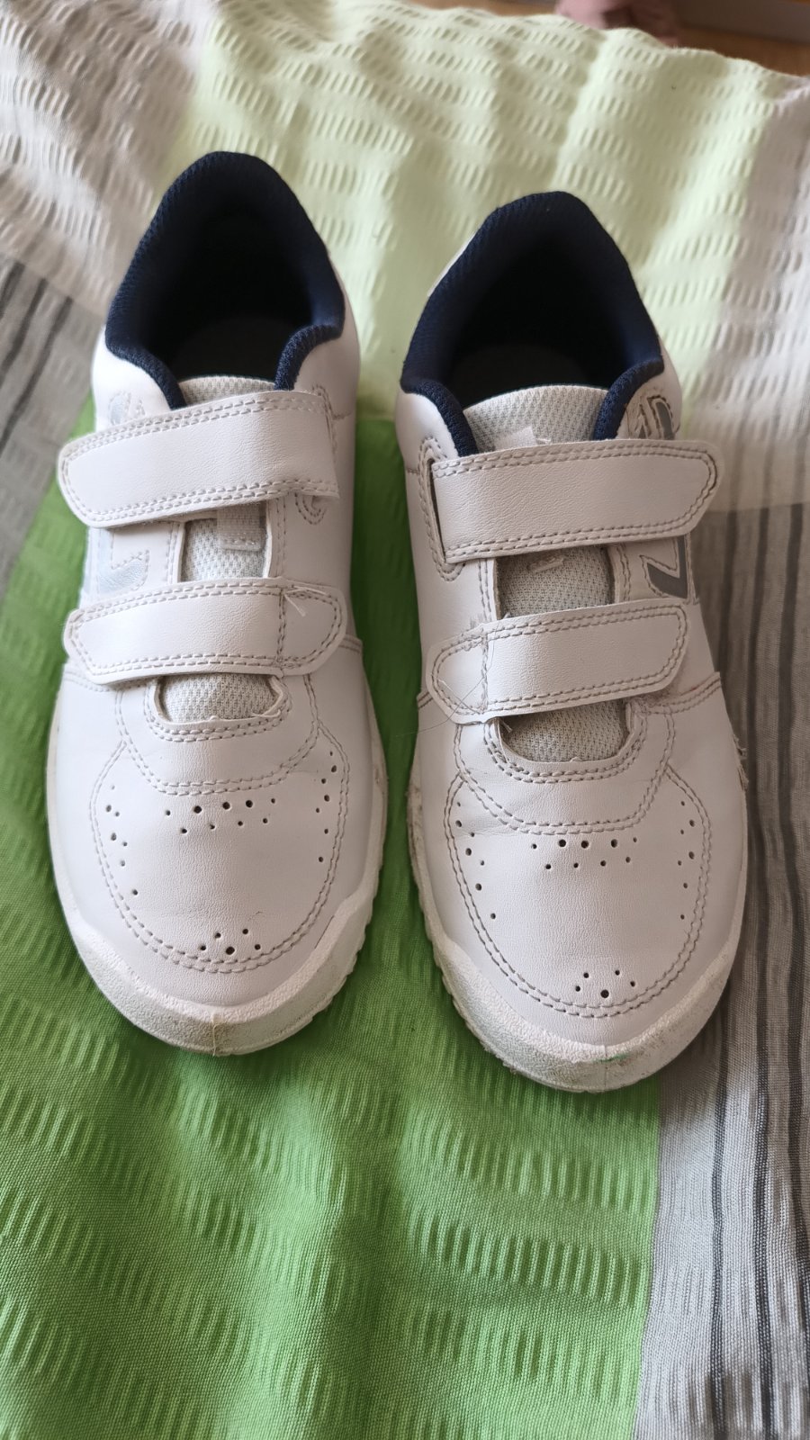 Tenisky na sport, do haly (halovky) alebo na telesnu nosene, ale stale v dobrom stave, ziadne poskodenia. Kupene v Decathlone. Velkost 35.