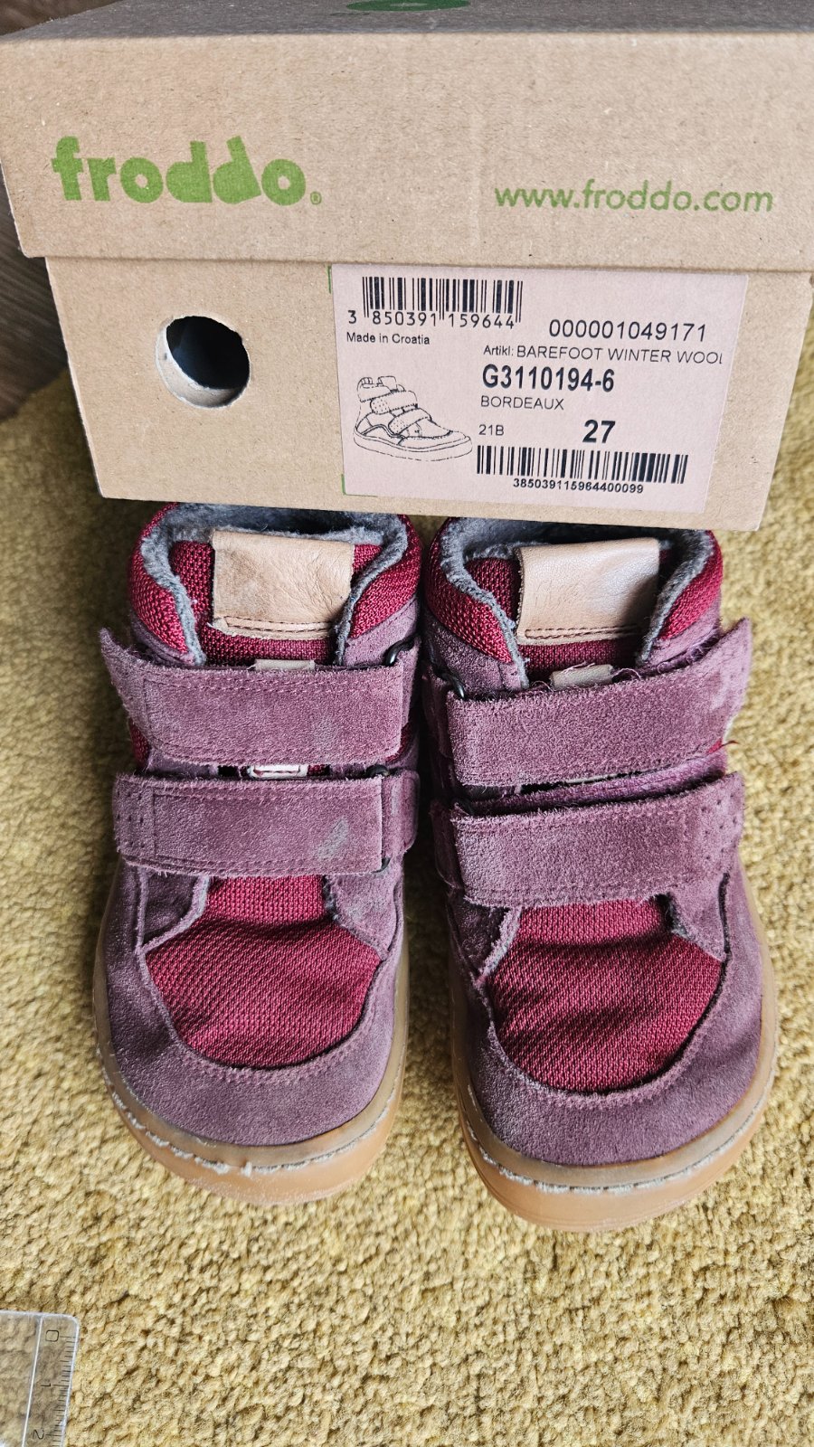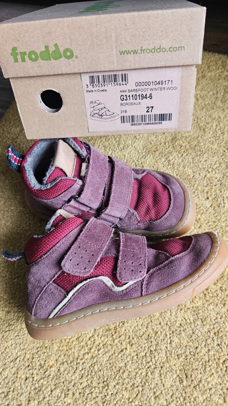 Predam pouzivane zimne barefoot Froddo topanky velkost 27, VD 176 mm. Vrch vodeodpudiva brusena koza + textil, vnutro zateplene makkou hrejivou kozusinou z ovcej vlny.