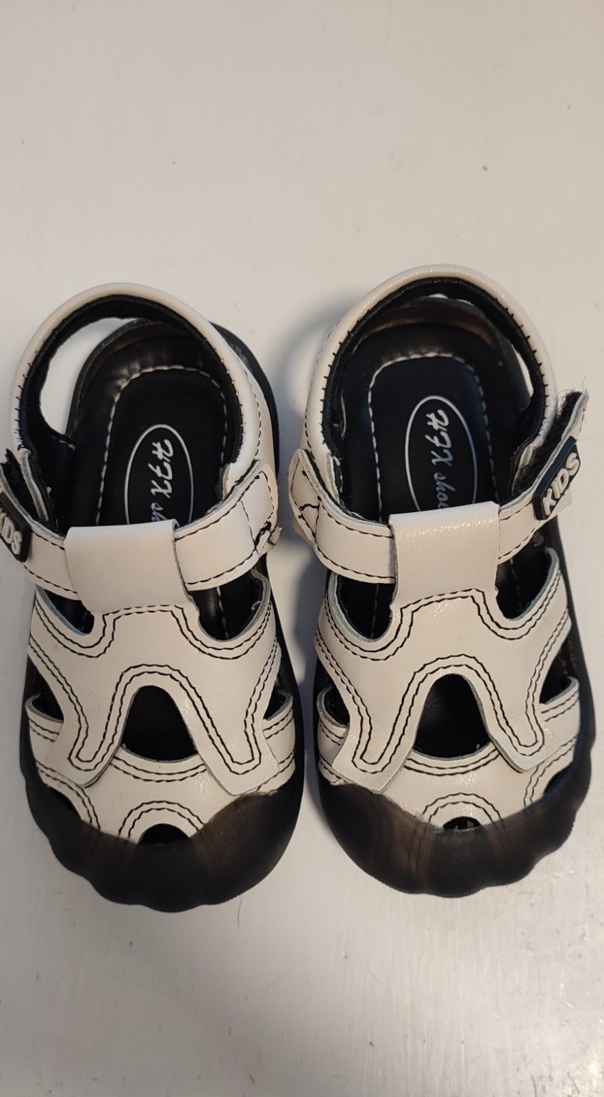Predam sandalky nosene mojim synom. Na prednych spickach mierne zosuchane od odrazadla, co ale pri noseni nie je vidiet. Odfotila som makrom. Zohladnene na cene. Cena plus posta