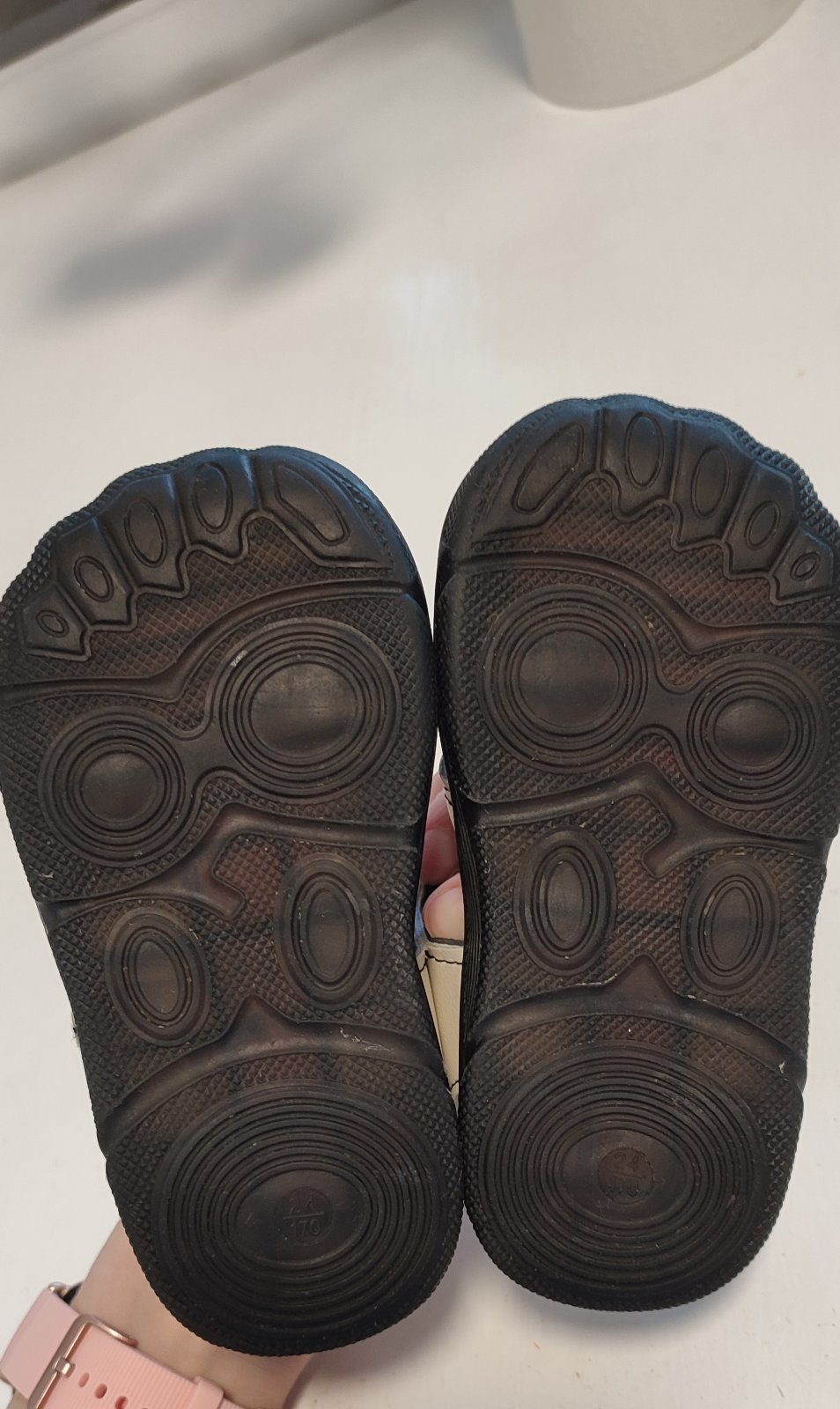 Fľaky zrejme od čaju, neskúšala odstrániť, nosené nado.a ako papuče