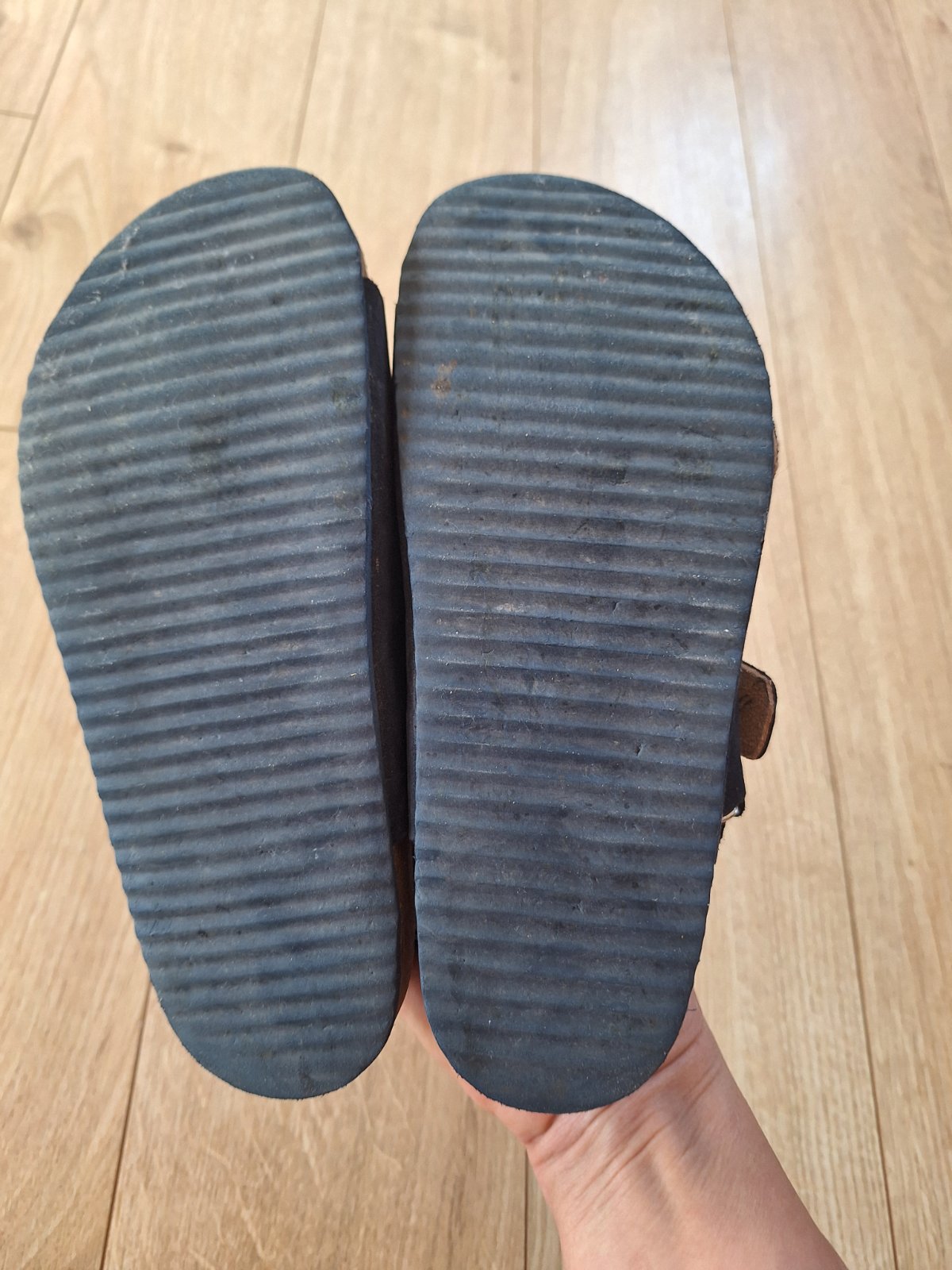 Sandálky nové ( bez krabice) mali slúžiť ako prezúvky ale ostali v zabudnutí a už sú malé. Je na stielke fixou meno, ktoré som sa pokúsila bezúspešne odstrániť....dá sa to zafarbiť Vnútorná dĺžka 1...