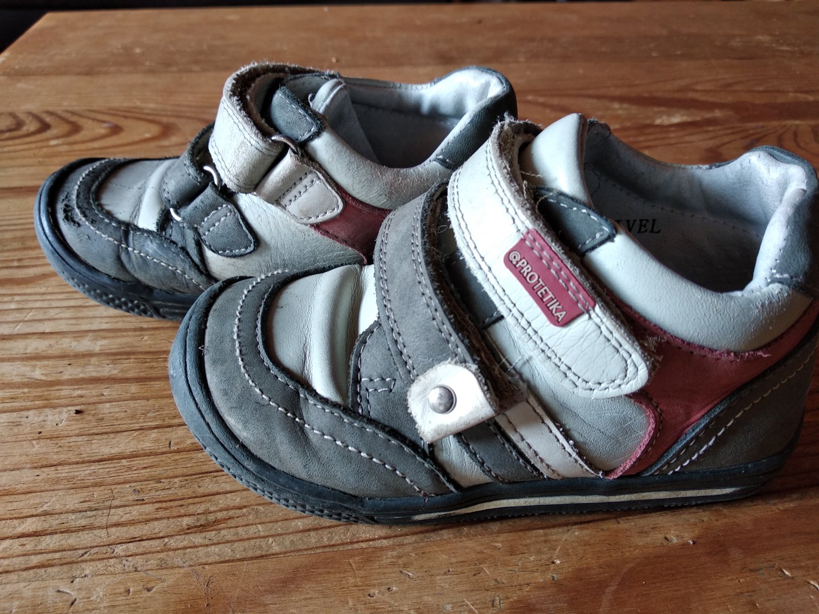 Kožené topánky značky Protetika, v dobrom stave, na dvor ešte poslúžia. Vnútorná dĺžka je 15,5 cm. Cena 4 € + poštovné.