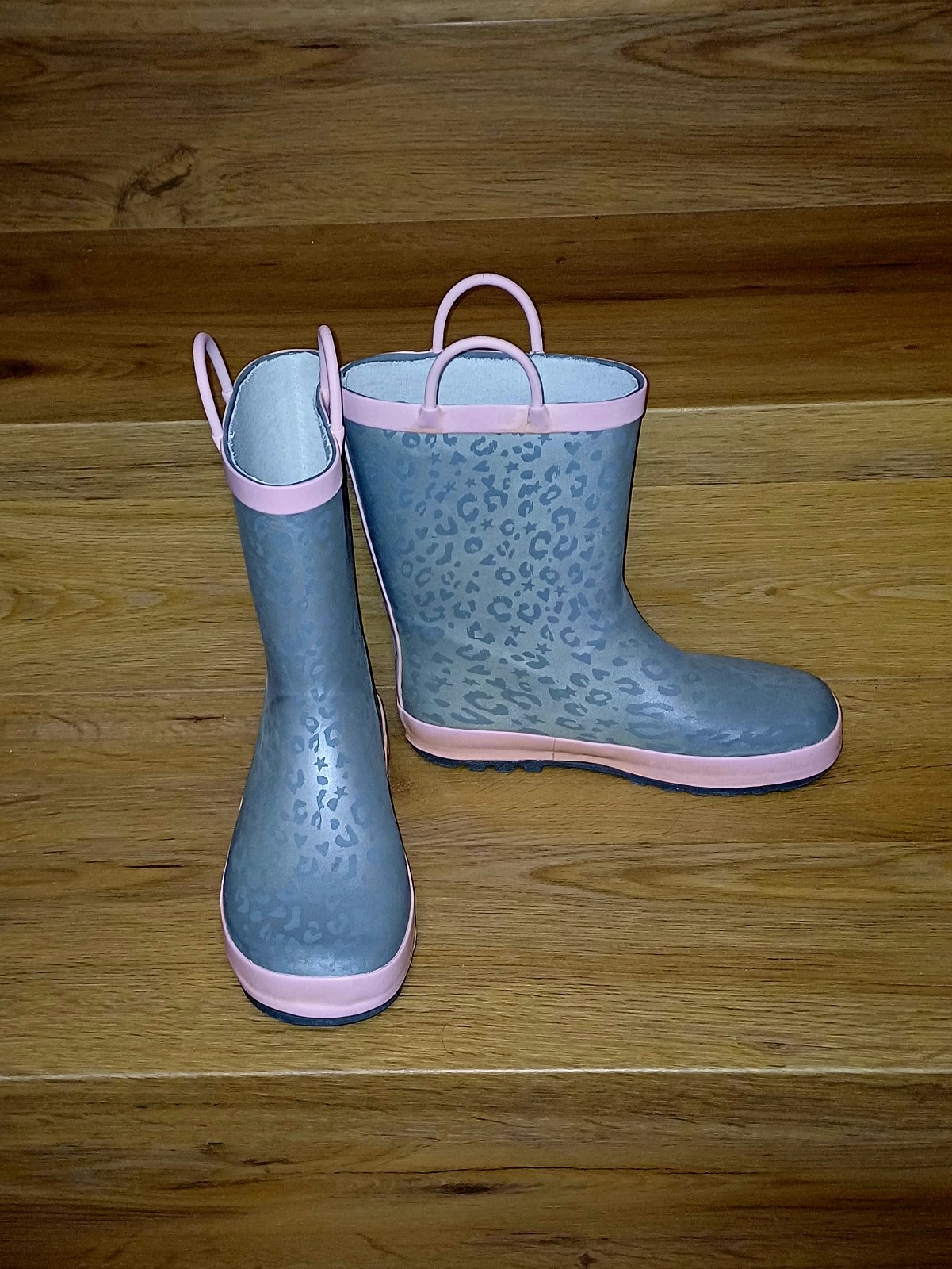Predám detské gumáky v.34, opotrebenie podľa foto.Vyčistené aj zvnútra. Na jednej čižme sa vpredu trochu olúpila guma, nebráni vo funkčnosti.