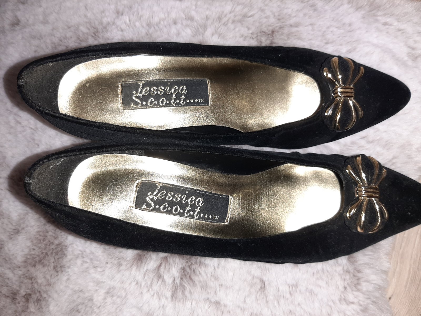 Sametové, ako pre popolušku. Značka Jessica Scott. Písané 38, ale skôr 37-37,5, vnútorná dĺžka 24 cm. Obuté 1x, opätok 8 cm.