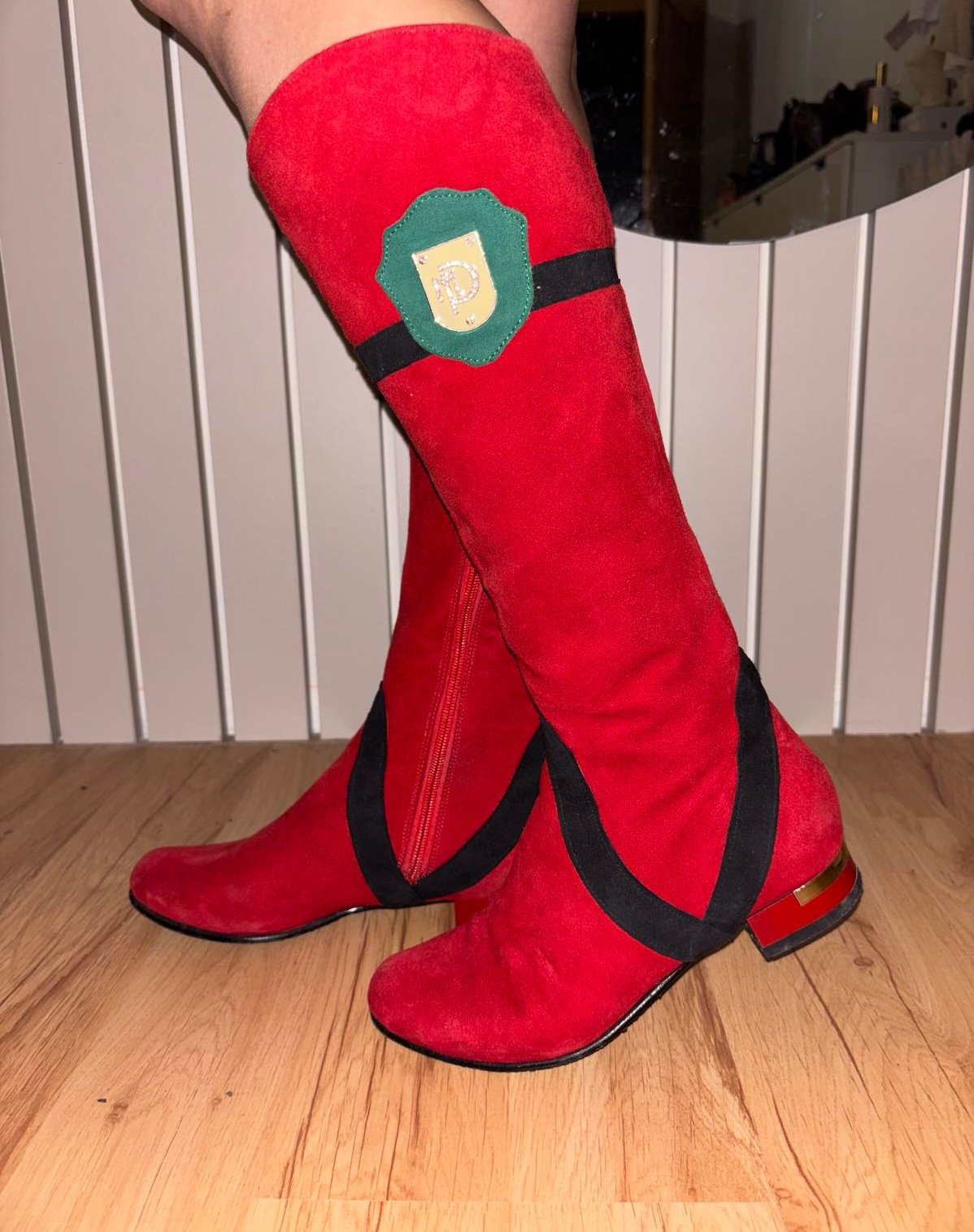 Brúsená koža, krásna červená, zateplene, obuté pár krát, veľkosť 36