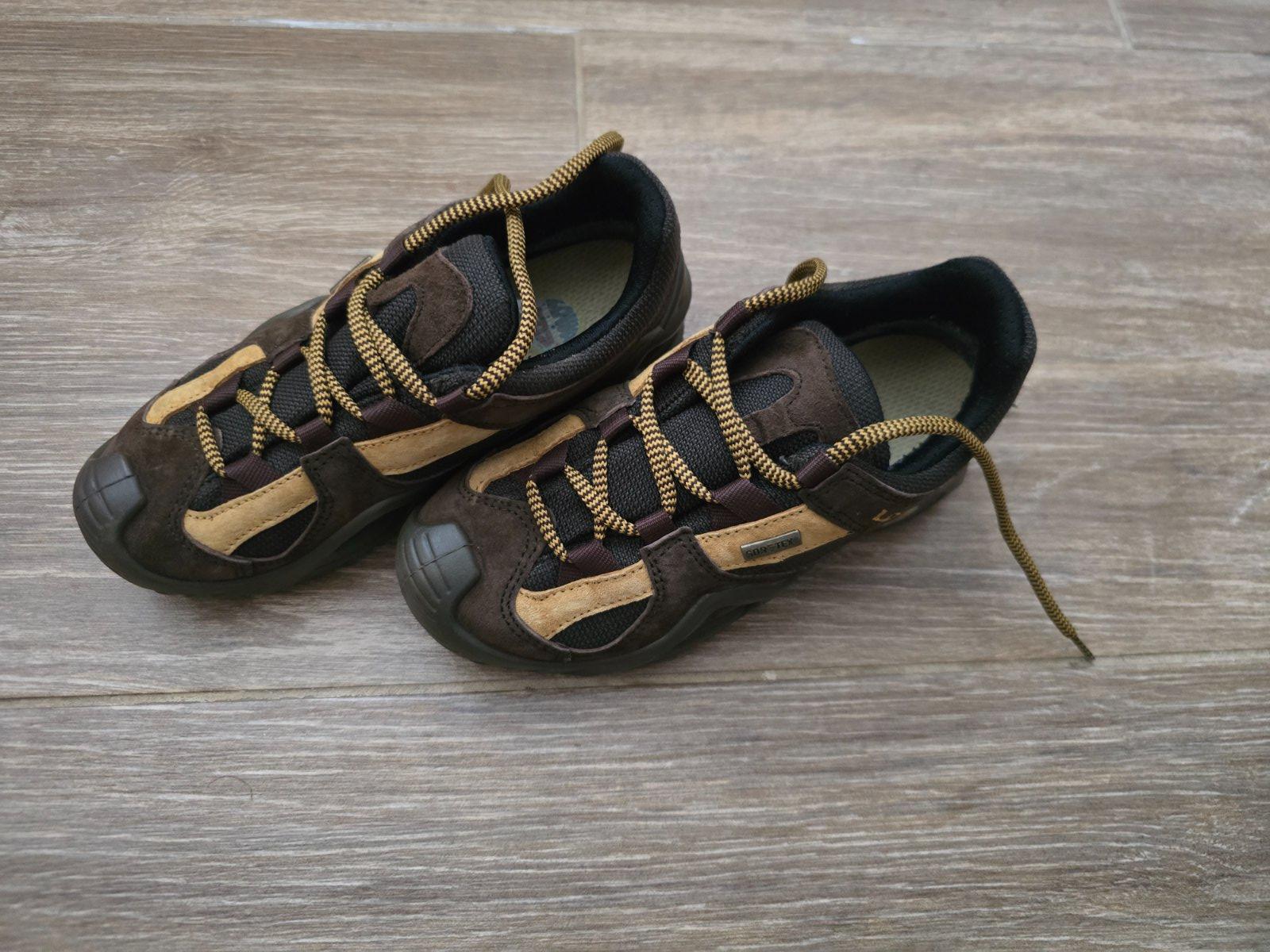 Nové, ani raz obuté, farba hnedo-tyrkysová, zapínanie suchý zips, koža. Optimálna dĺžka chodidla 19,5 až 20,20 cm ( udáva výrobca)