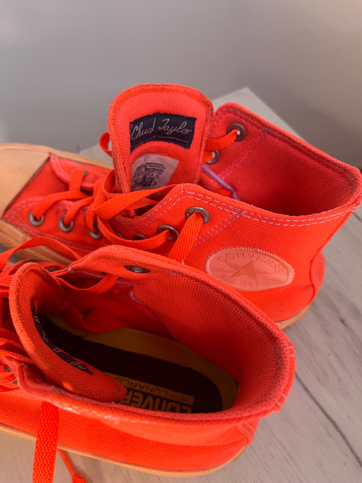 Plátenky Converse po dcére. Málo nosené bez poškodení. Tmavo ružová farba. Sú vyčistené len handričkou, nie sú opraté. Vnútornú dĺžku som namerala 24cm. Kupované v športovom obchode. Cena:15€ +pošta