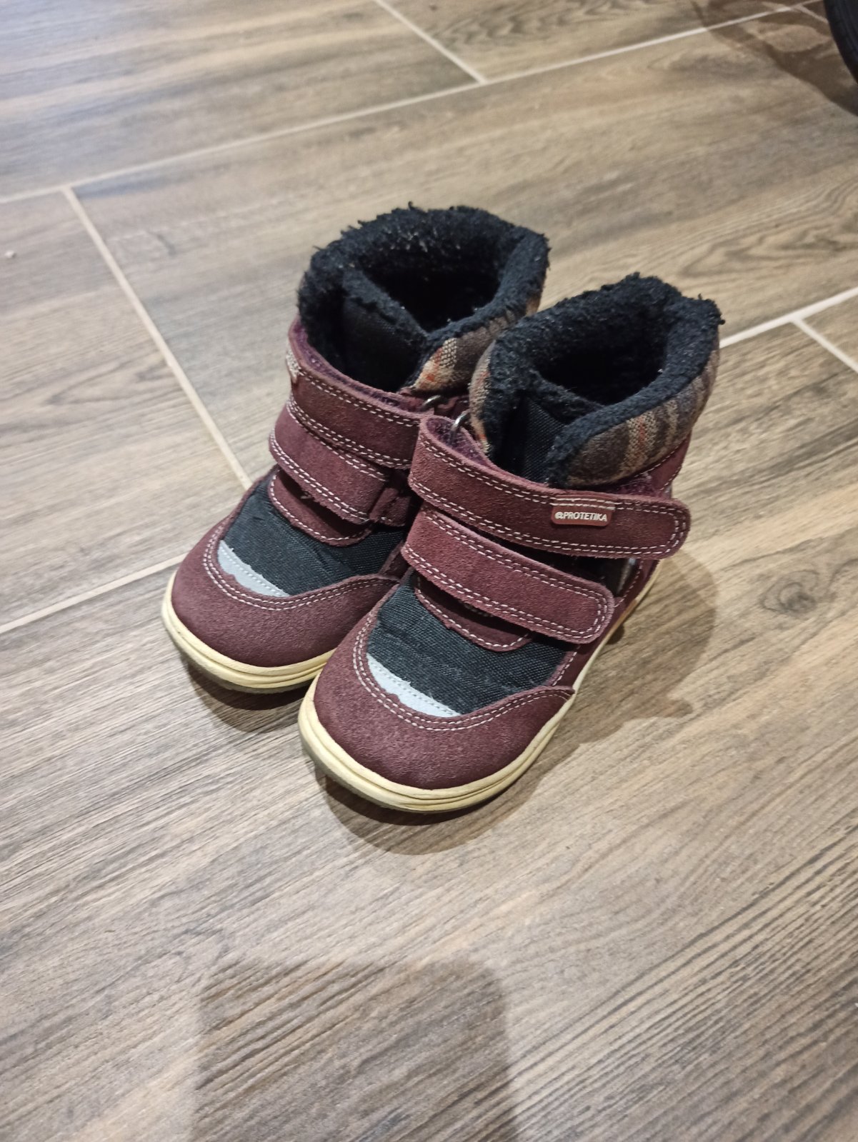 Fajne teplé, nosené dobre sa obuvajú, brúsena koža 14,5cca dĺžka vnútri,pri veľkej zime kožušina sa dá zdvihnúť čím zahreje viac nožku dieťatka