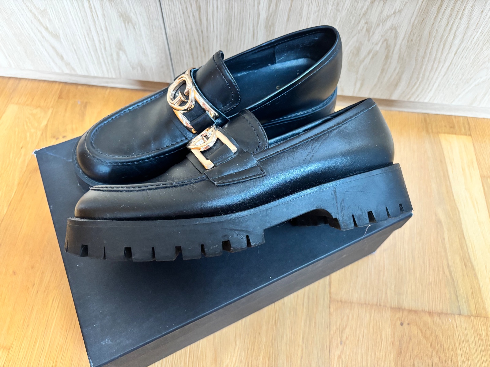 Krásne čierne topánky Guess, kožené, párkrát obuté. Vnútorná dĺžka 26 cm. PC 149€.