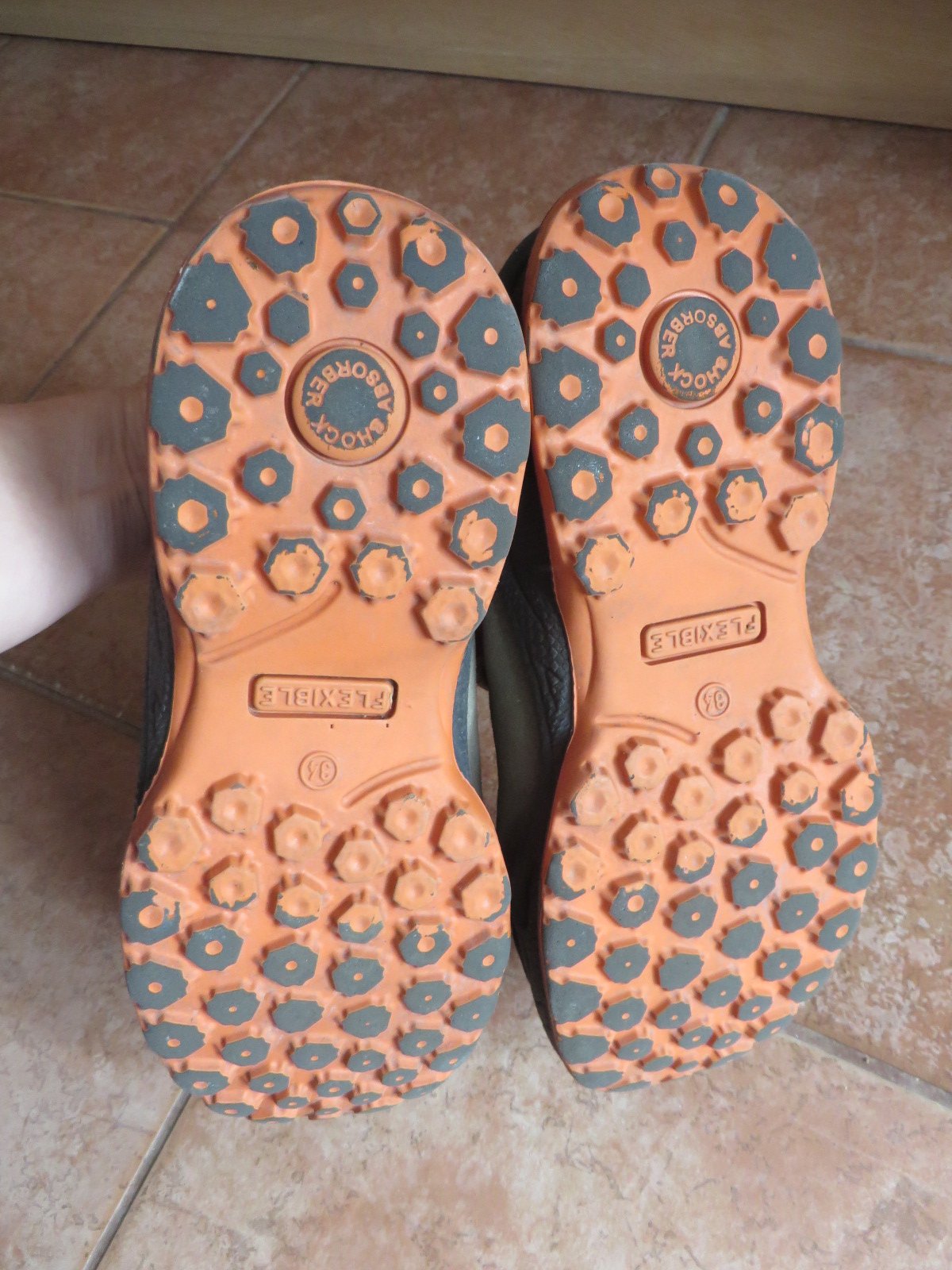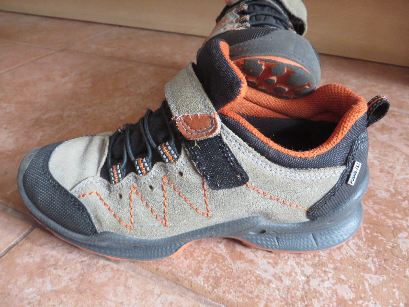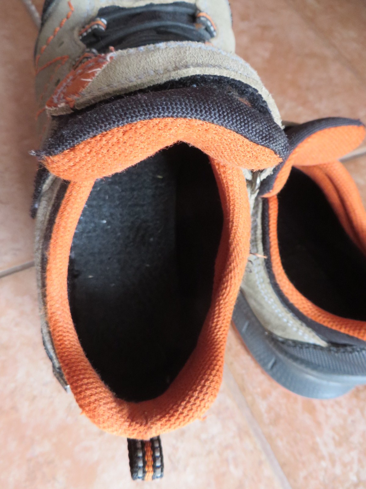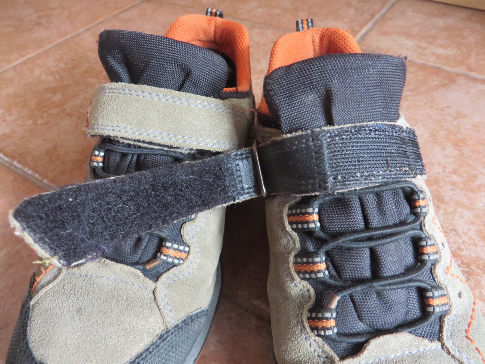 Predám nosené tenisky, veľ. je 33/34, vnútornú dĺžku majú po premeraní 22 cm. Ide o výborné nepremokavé tenisky, vhodné aj do mokrého počasia a dažďa, pretože majú membránu. Suché zipsy sú v 100% stave, sú neošúchané. Farebná kombinácia je olivovozelená s oranžovou. PC bola 49,95€, predávam za 22€.