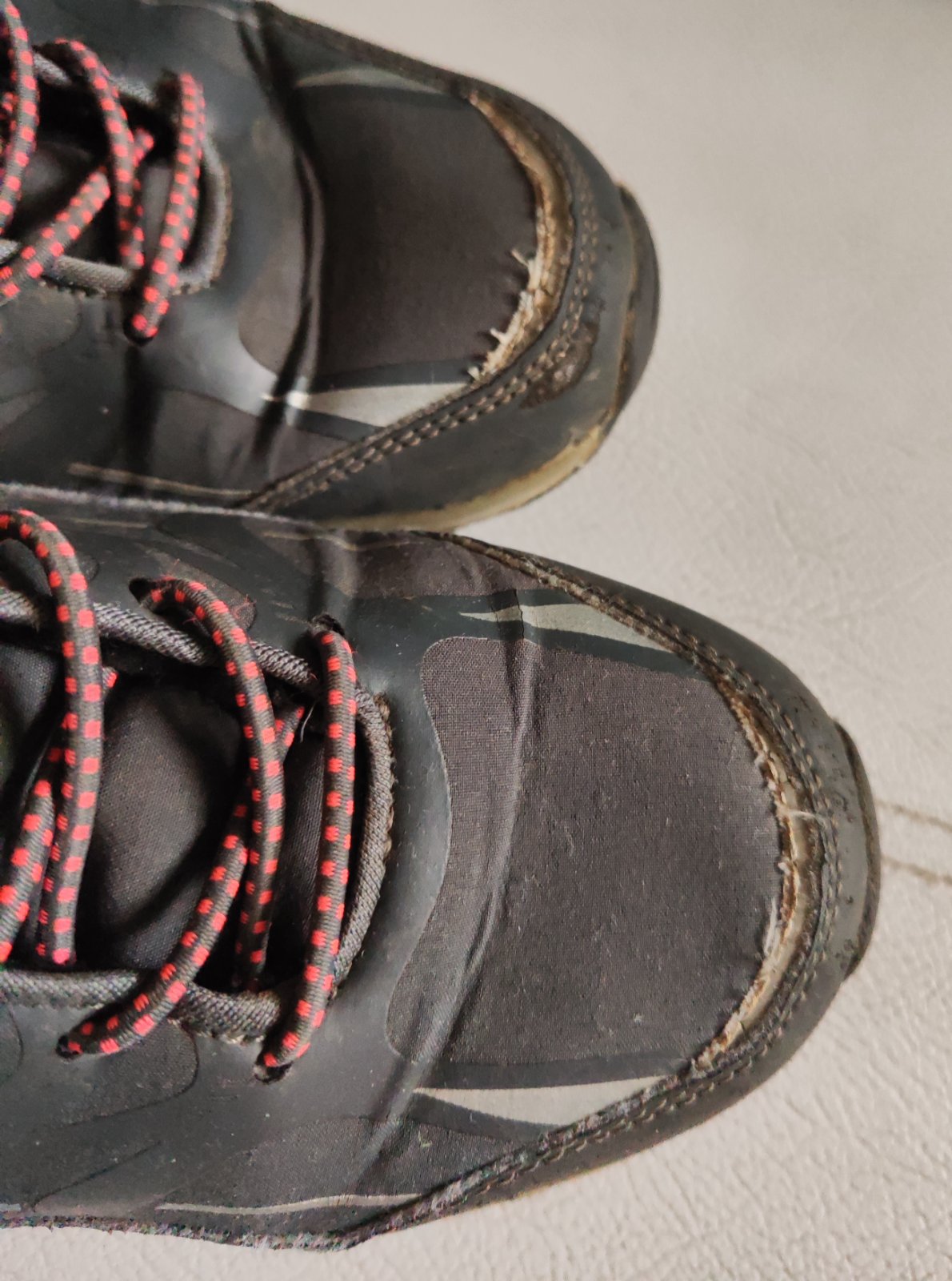 Trekové topánky, trochu zničené špičky, vid foto, ale inak v úplne perfektnom stave, to poškodenie je málinko pri nosené vidno, takže v pohode aj do školy, nepremokali, ani s poškodenými špičkami, ...