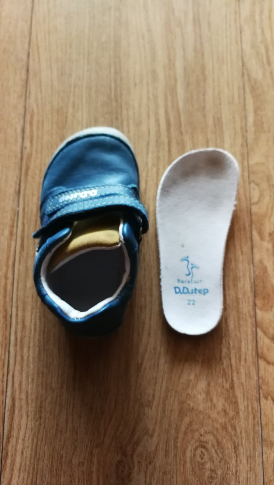 Predám chlapčenské kožené prechodné barefoot topánky značky DD step. Boli nosené asi len dva mesiace, sú vo veľmi zachovalom stave. Veľkosť 22, vyberateľná stielka veľkosti cca 14,5 cm (viď foto). Sú veľmi pohodlné, mäkké s flexibilnou podrážkou.