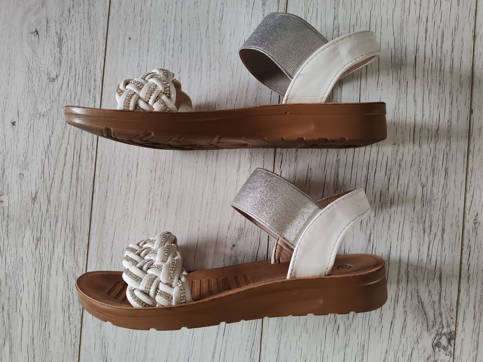 Letné sandálky, málo nosené. Špička pravej sandálky je trošku poškodená, viď foto. DT je 23 cm.