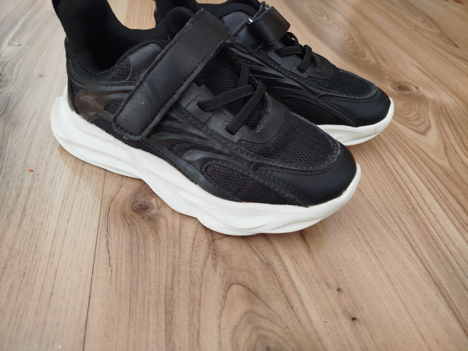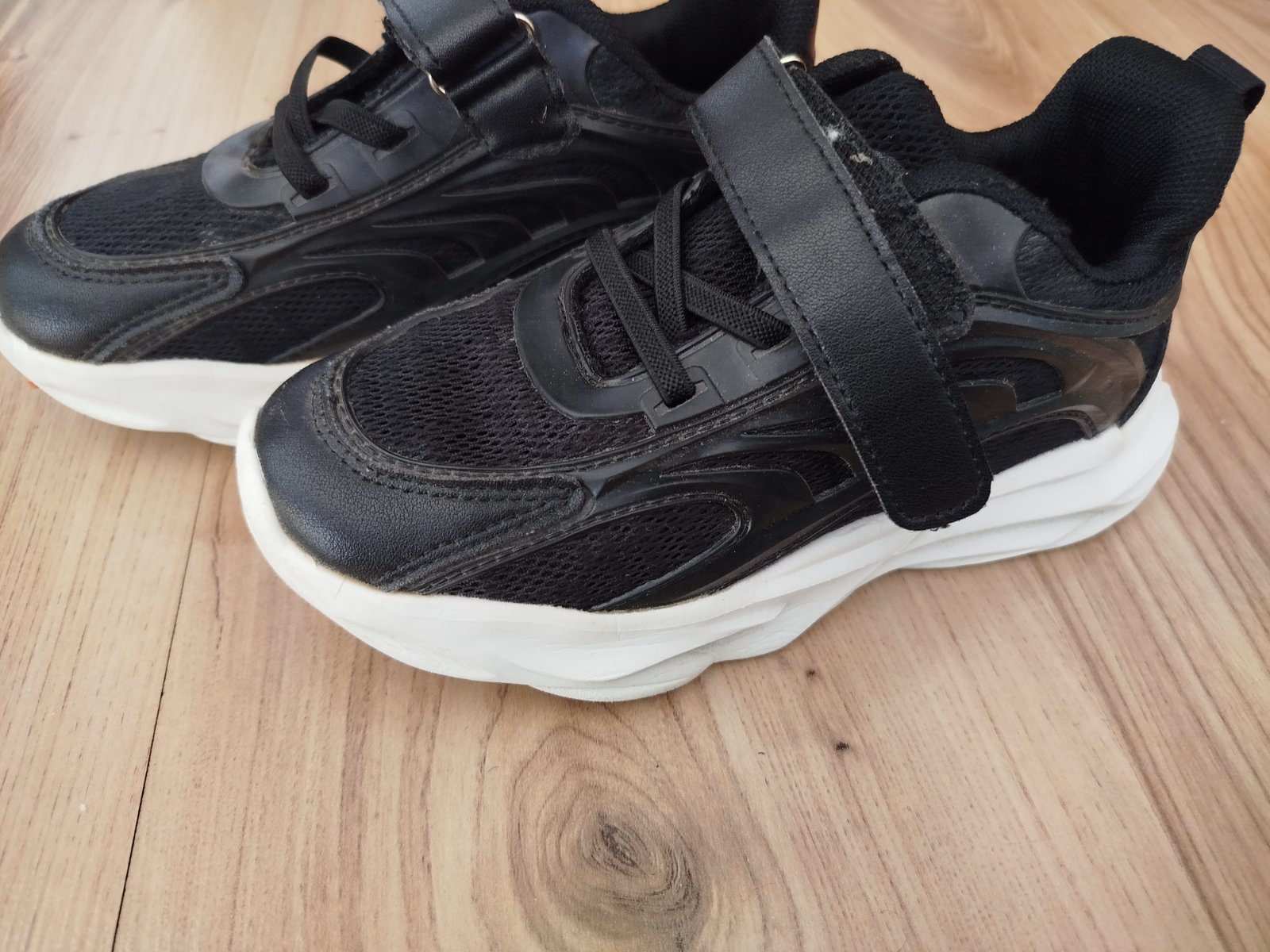 Predám čierne kožené tenisky Levis, vhodné ako prechodná obuv. Na jednej špičke mierne prasknuté a na druhej trošku okopané, no určite ešte poslúžia. Zapínanie je na suchý zips. VD je 19,5cm.