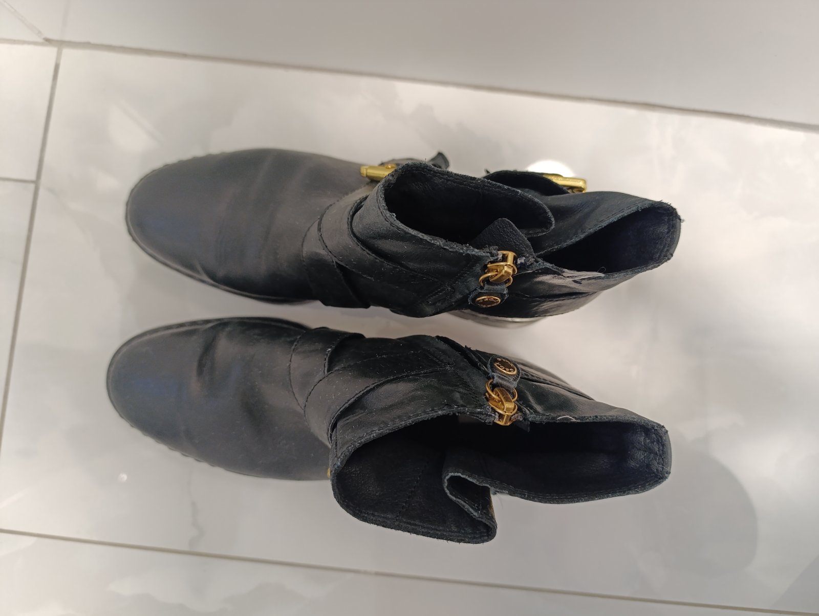 Dobrý nosený stav. Podrážka na päte trochu schodena vid foto