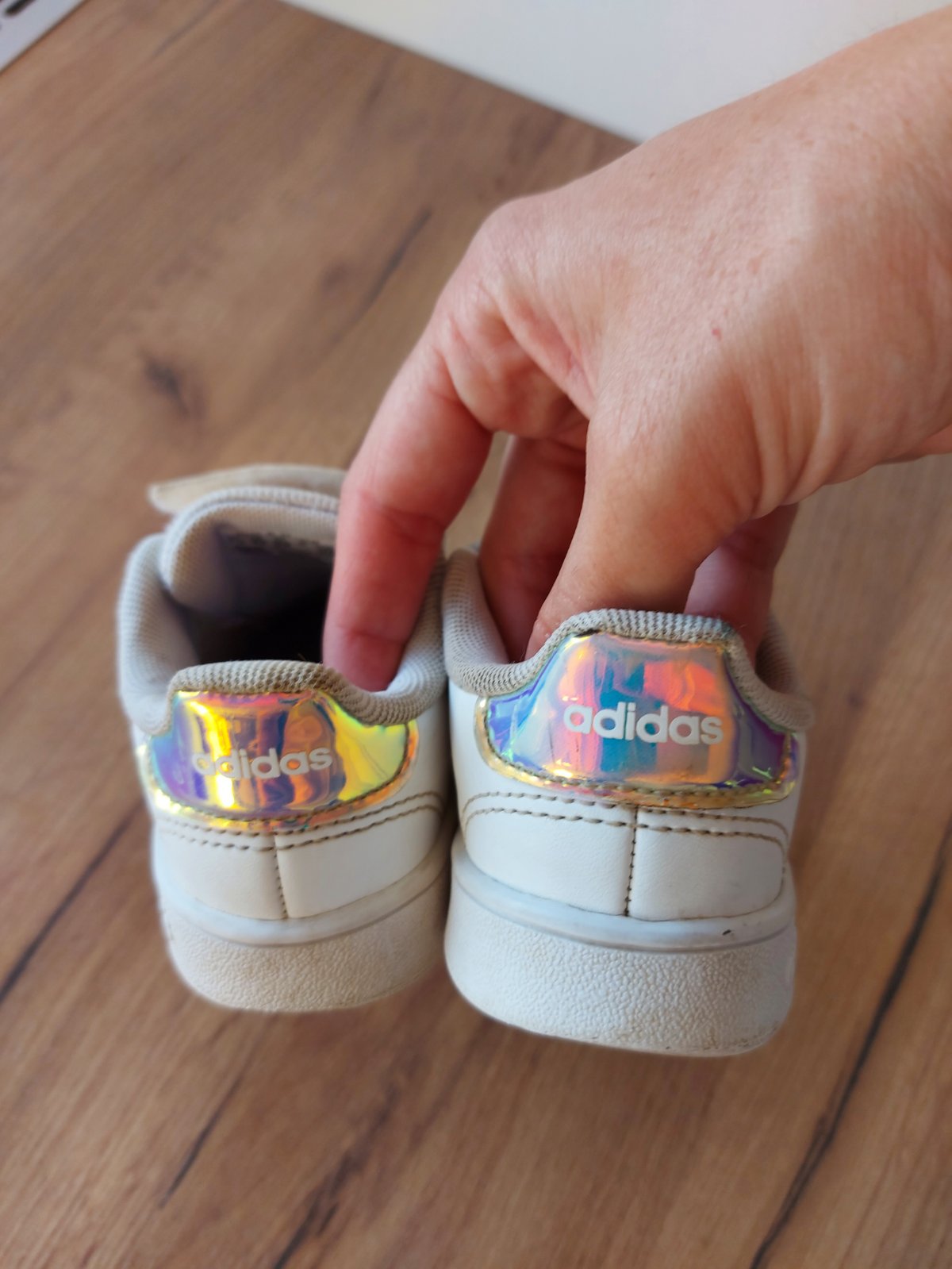 Adidas tenisky.Bez poskodeni.Malo nosene.Biele s lesklymi pruzkami po bokoch.