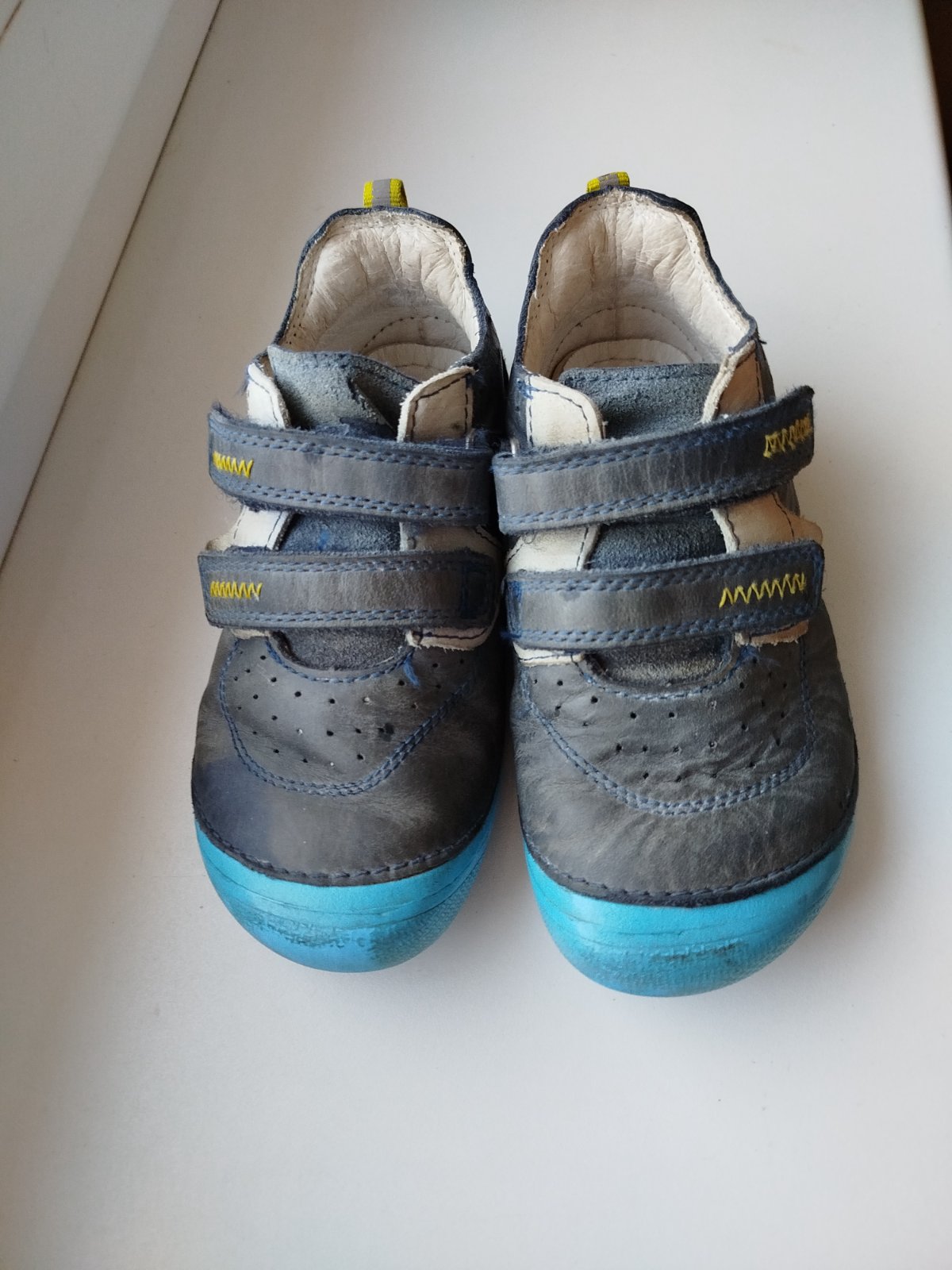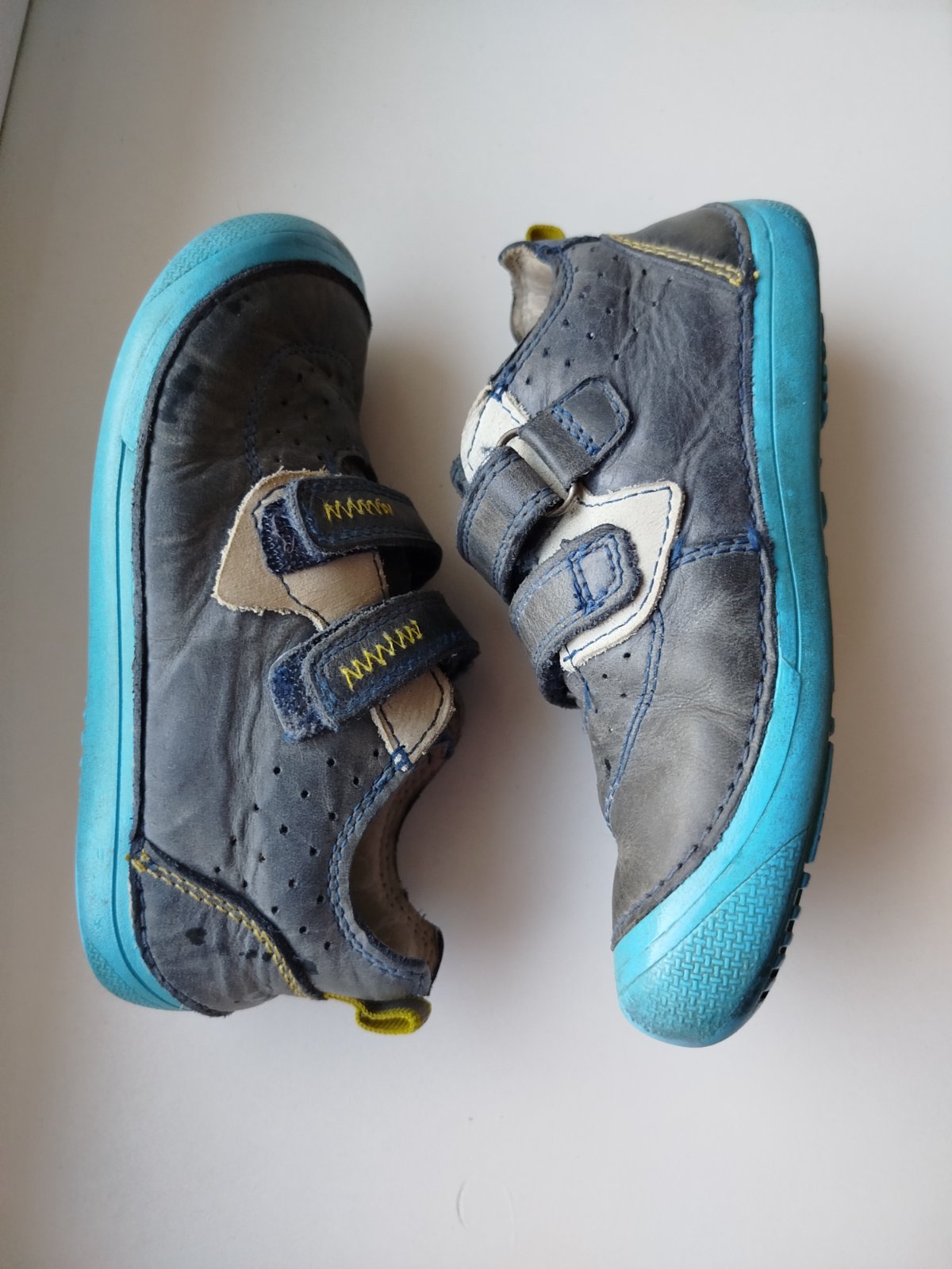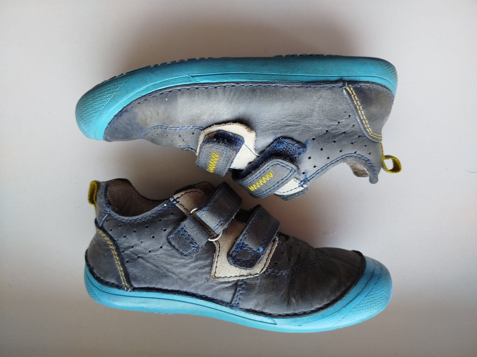 Predám nosené celoročné kožené barefoot topánky, v dobrom stave. Po jednom umývaní sa na pravej topánke urobil tmavší fľak, akoby pustila farba nite. Inak si to vysvetliť neviem. Ostatné je v dobrom stave.