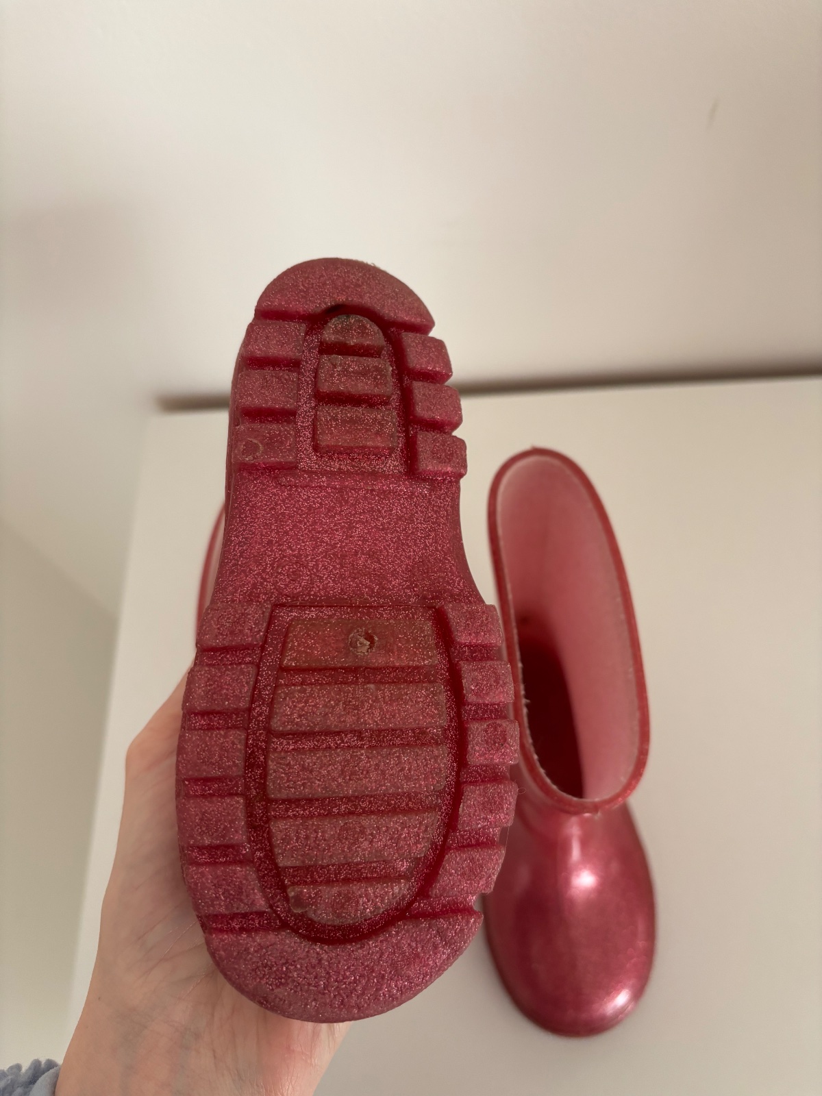 Krásne gumáčiky z kvalitnej gumy talianskej vyroby pre dievčatko (kúpené v Deichmanne). Nosene minimálne, bez škrabancov a odtlacenej nôžky. Akurat lienka na jednej z topánok je ošúchaná. Vel 23