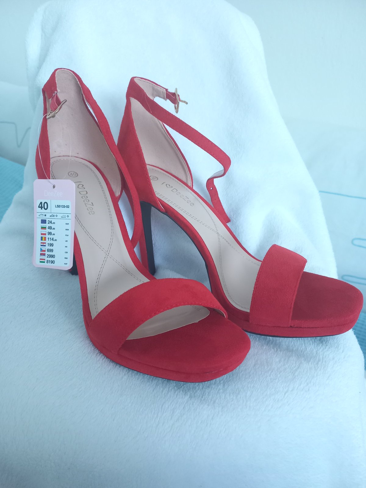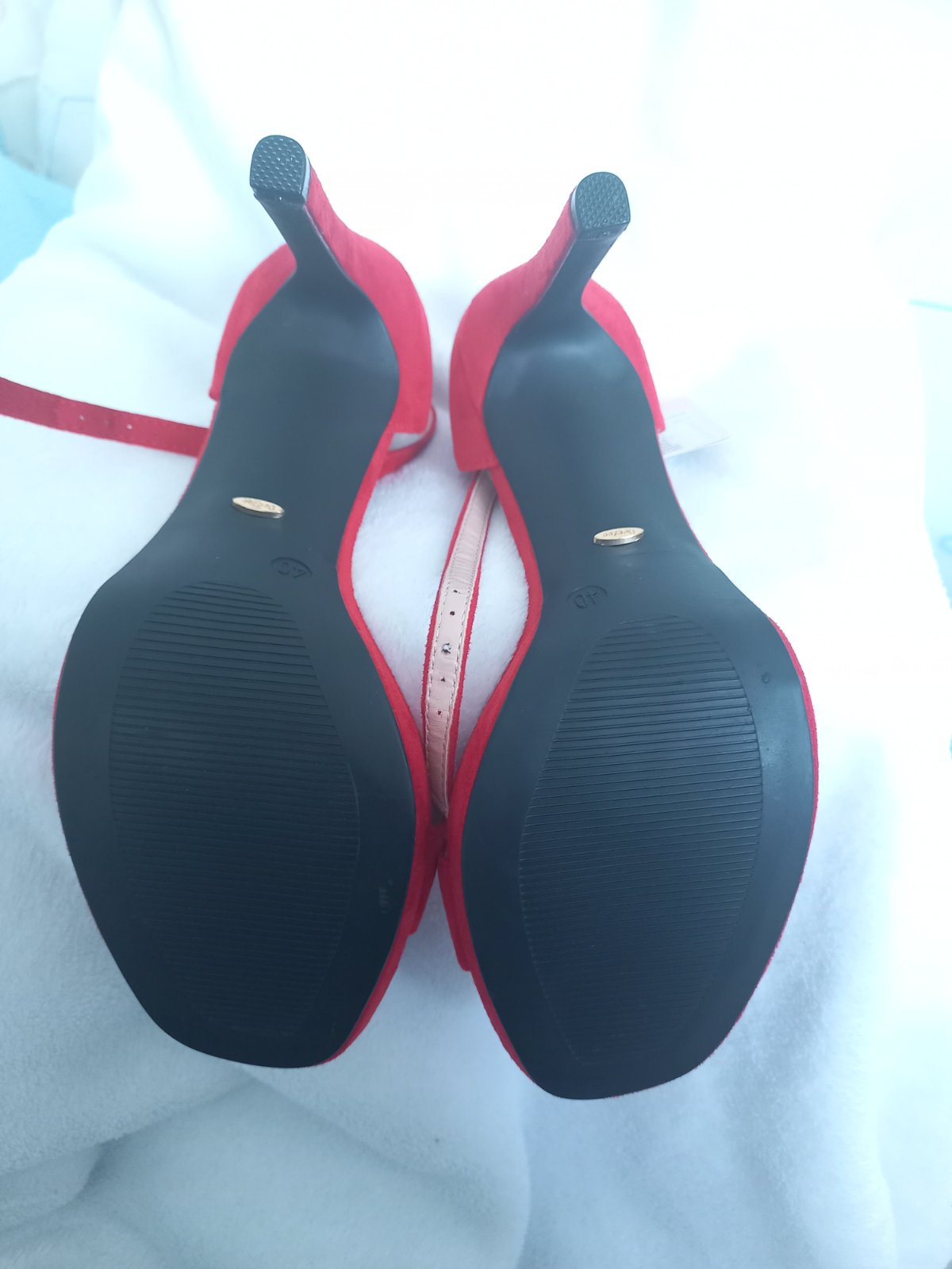 Letné sandálky na platforme, sú ľahučké, kombinácia béžovej a sýtej červenej. Veľkosť uvedená 41, sedí na 40, vnút. dĺžka 26cm, výška platformy pri päte 5,7cm, pri prstoch 2,7cm.