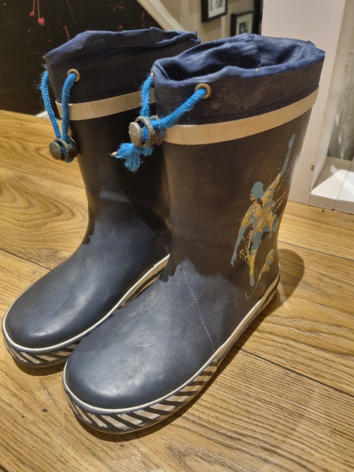 Gumáky boli celý rok v škole, keby náhodou počas dňa pršalo. Používané, no nie až tak veľmi. Vn.