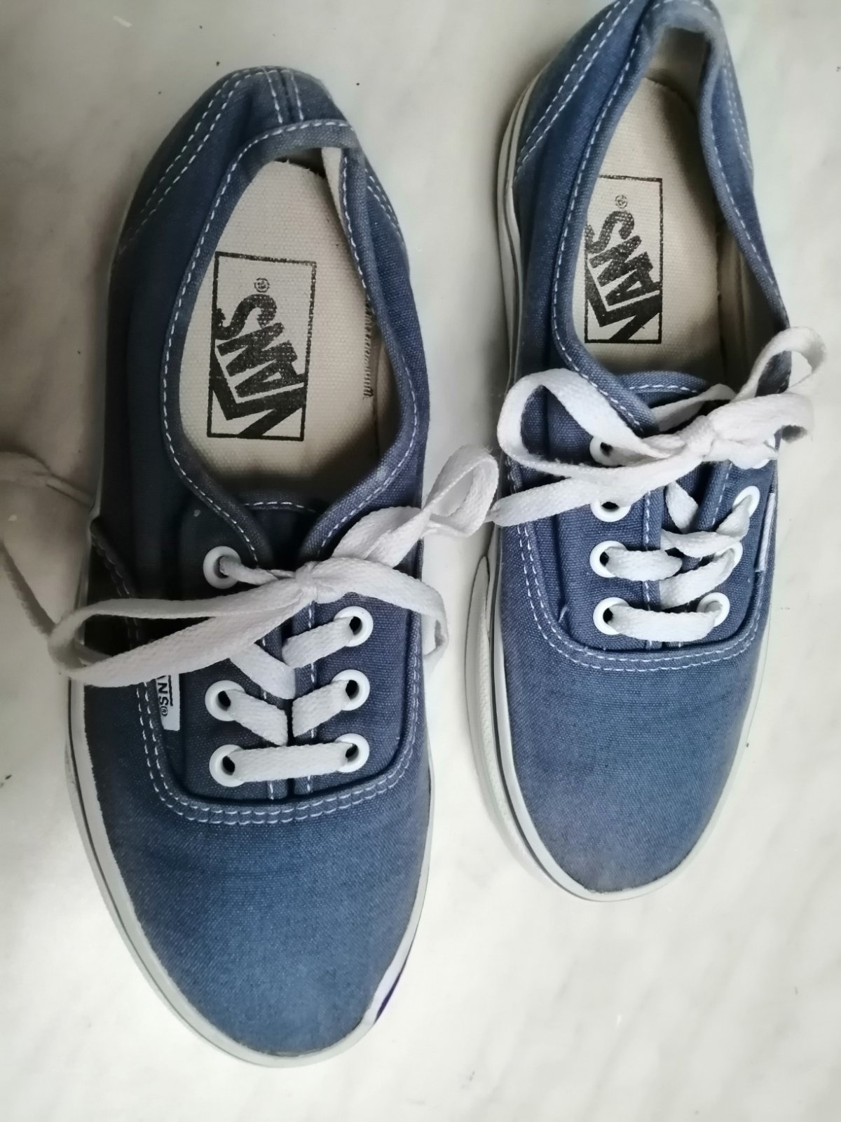 Bledomodré vans babyblue tenisky, dcére kupované na Vianoce, no už ju 36 tlačia a musíme kupovať už 37. Preto takmer nenosené, mala ich párkrát. Vnútorná dĺžka 22 cm cena už znížená niekoľkokrát ...
