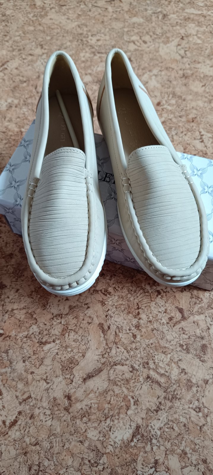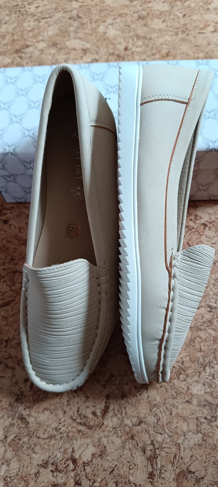 Topánky krémovej farby, nové, VD=24cm