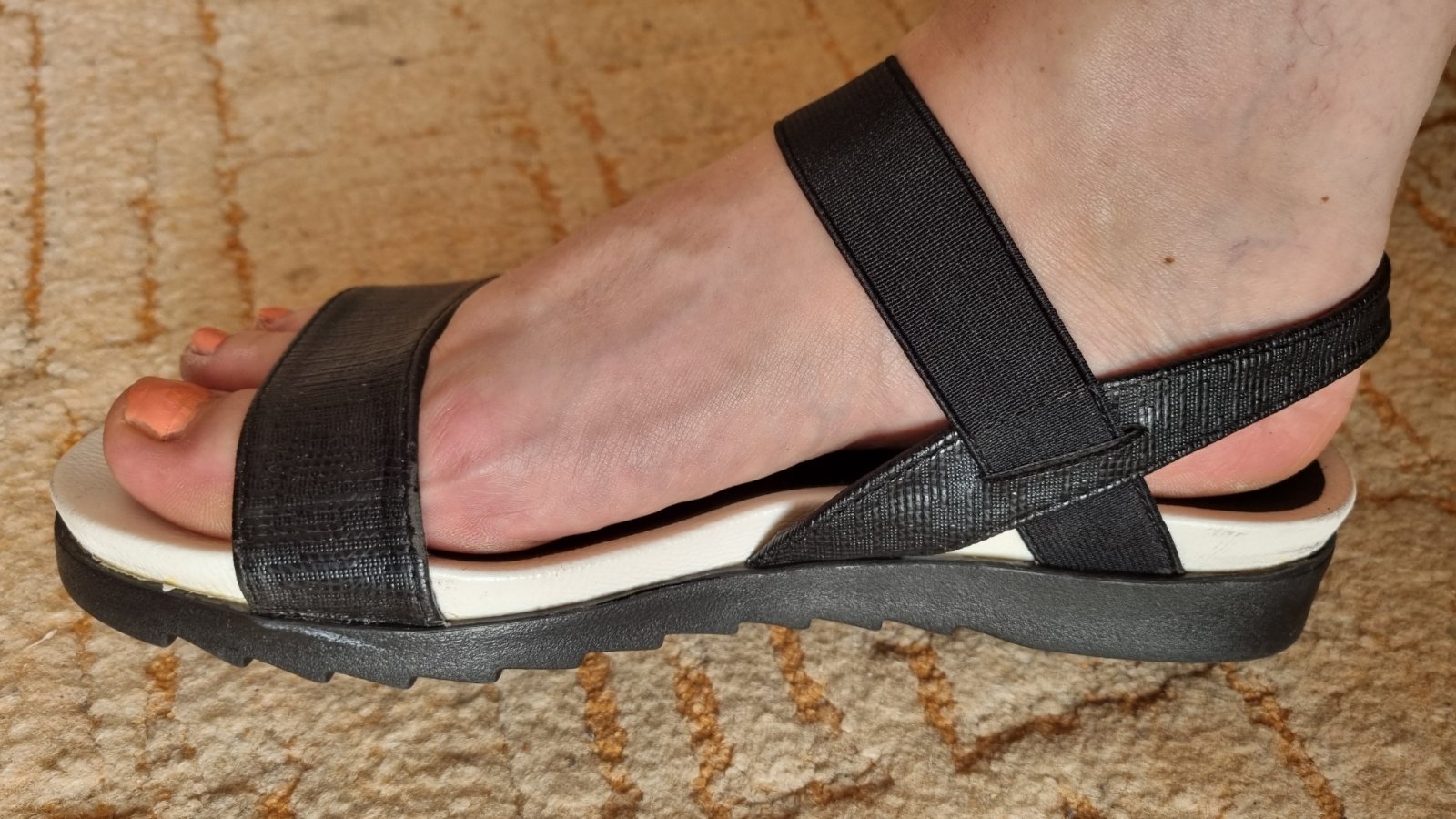 Používané vo veľmi peknom stave, pohodlne, lahke,neokopane len na ľavej sandálke vid.posledna fotka je zazltnutie.