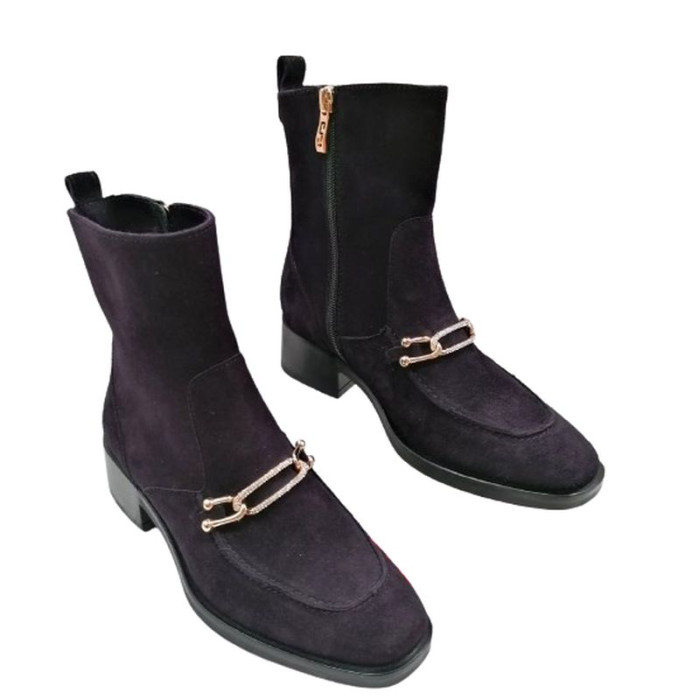 Členkové elegantné čižmy je povinná výbava v šatníku každej ženy. Značka Simen prišla s luxusnou novinkou, ktorá nadchne na prvý pohľad či obutie. Pohodlný model, ktorý je mimoriadne ženský, skvelo vyznie pri kožuchu či kabáte. Podpätok má originálnu výšku a hrúbku, čo vás podrží počas celého dňa bez bolestí nôh. Velúrový zvršok je luxusný spolu s malou retiazkou vytvárajú dokonalú zimnú obuv pre ženy.