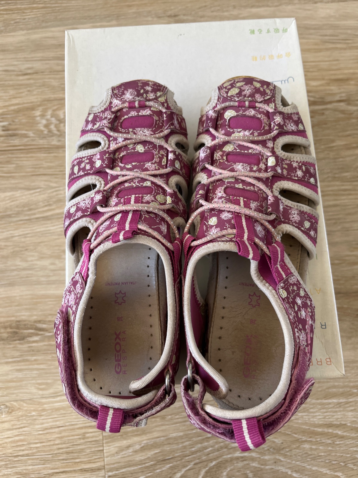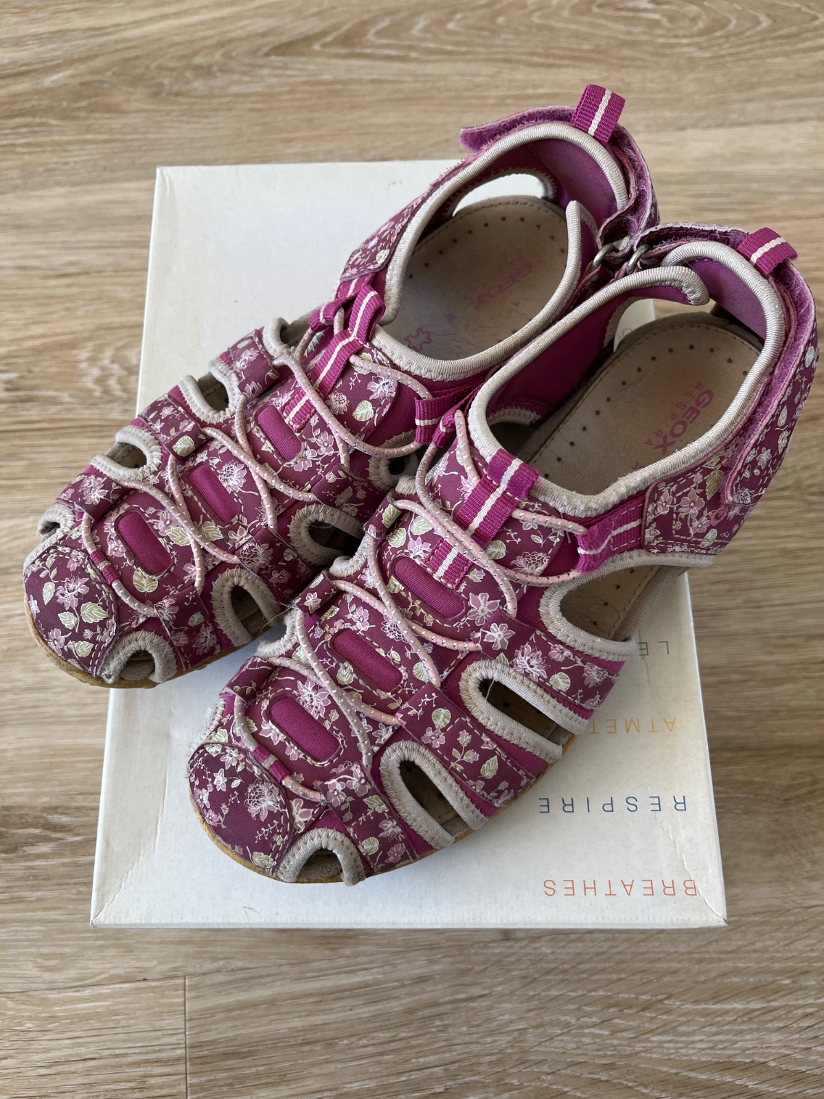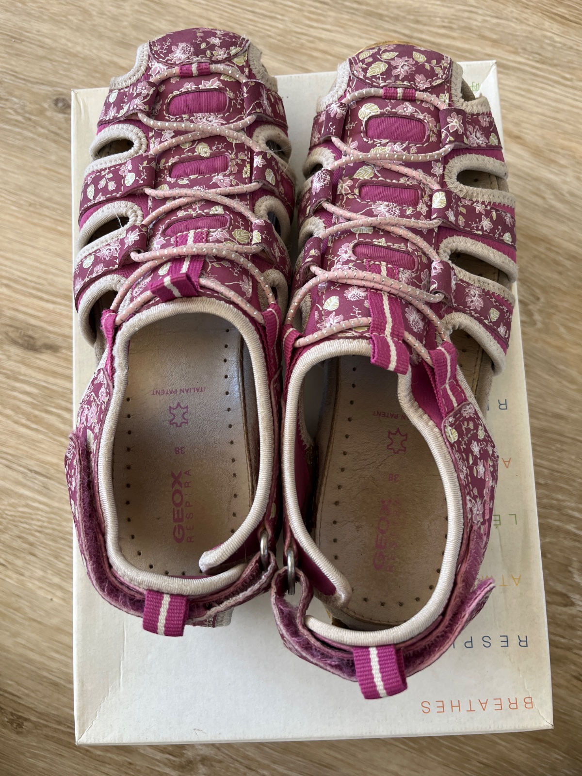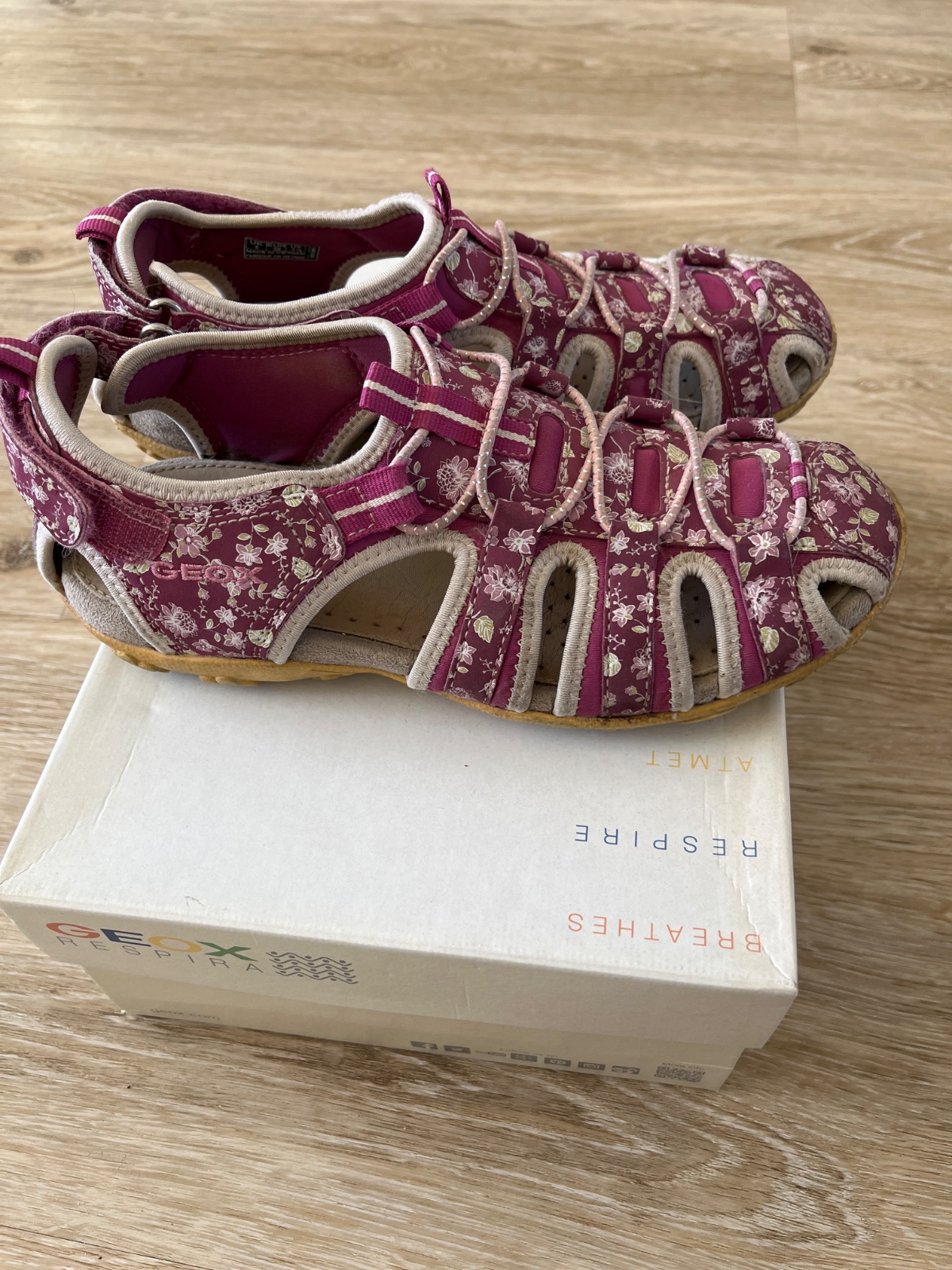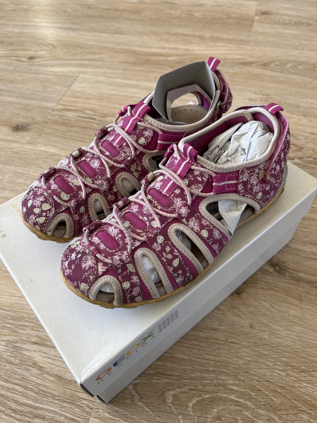 Detské športové pohodlné sandále zn. Geox respira. Málo nosené, pružné, suchý zips vzadu. Kožená podrážka. Mali sme od malička každú veľkosť, veľmi obľúbený typ obuvi.