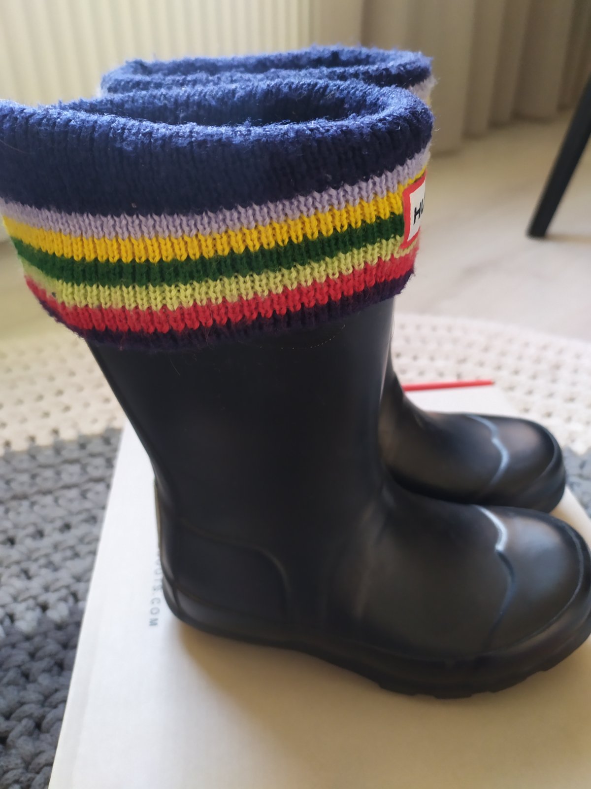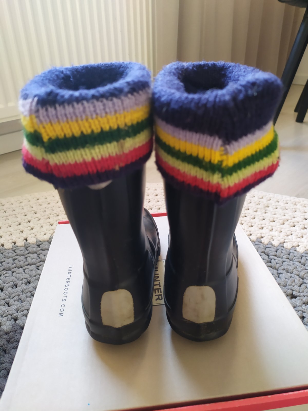 Predám príležitostne nosene gumaky po dcérke v dobrom stave ,+hrube ponožky hunter do chladnejsieho počasia ,velkost 26/27 .pc:75€gumaky a 30€ ponožky . Spolu cena 25€