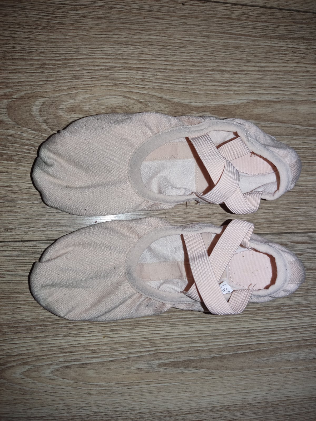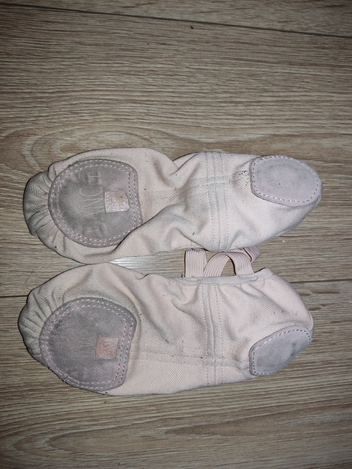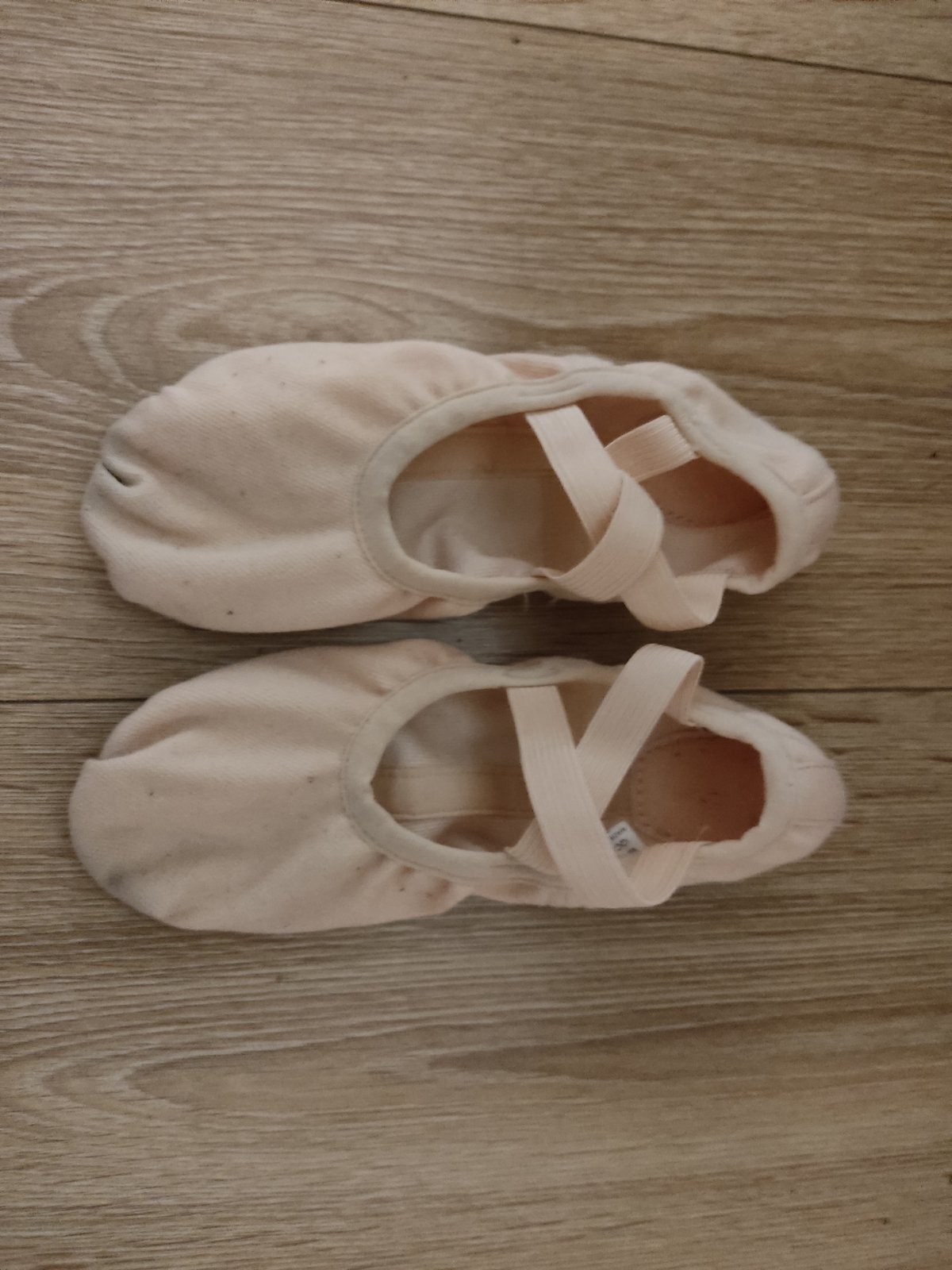 Nosene malo, na mozno 5 treningov. Z platna vnutri i vonku koža. https://www.decathlon.sk/p/305192-58494-damske-platenne-piskoty-na-balet-lososove-s-delenou-podrazkou.html