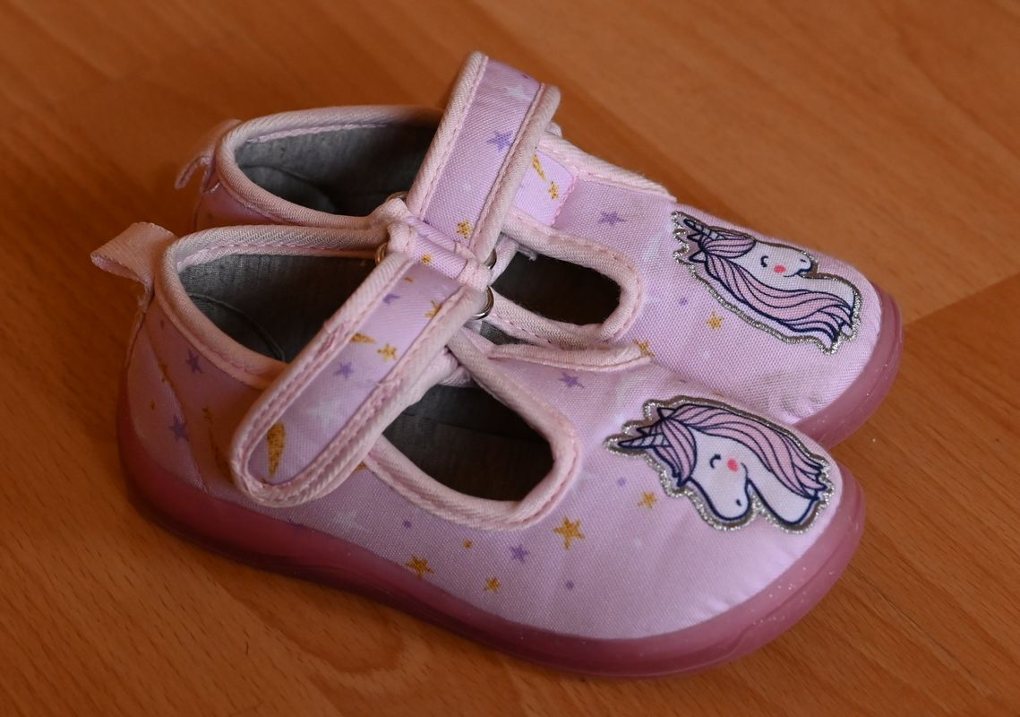 Papuče nosena na doma, beruskina vlasy a trochu zosuchane vid posledná fotka inak bez poškodenia. Lahko sa obuvaju aj dieťaťu, podľa mňa vhodné aj na leto ako slapky/sandalky.