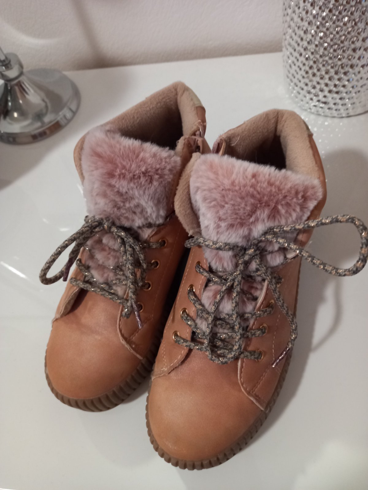Predám rozkošné kotníkové zateplené topanky s kožušinkou.Malo nosené. Na jednej špičke trochu odřené.Vid.foto Inak bez vád