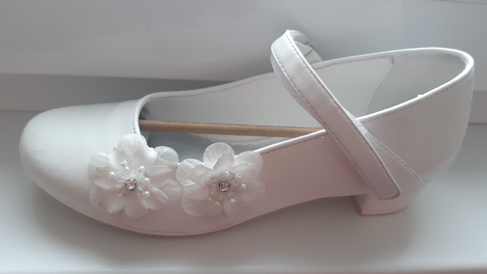 predám slávnostné biele topánky č. 35 so zatvorenou špičkou vhodné napríklad na prvé sväté prijímanie. Obuté boli dvakrát, sú veľmi pohodlné na nízkom podpätku. K cene treba pripočítať poštovné.