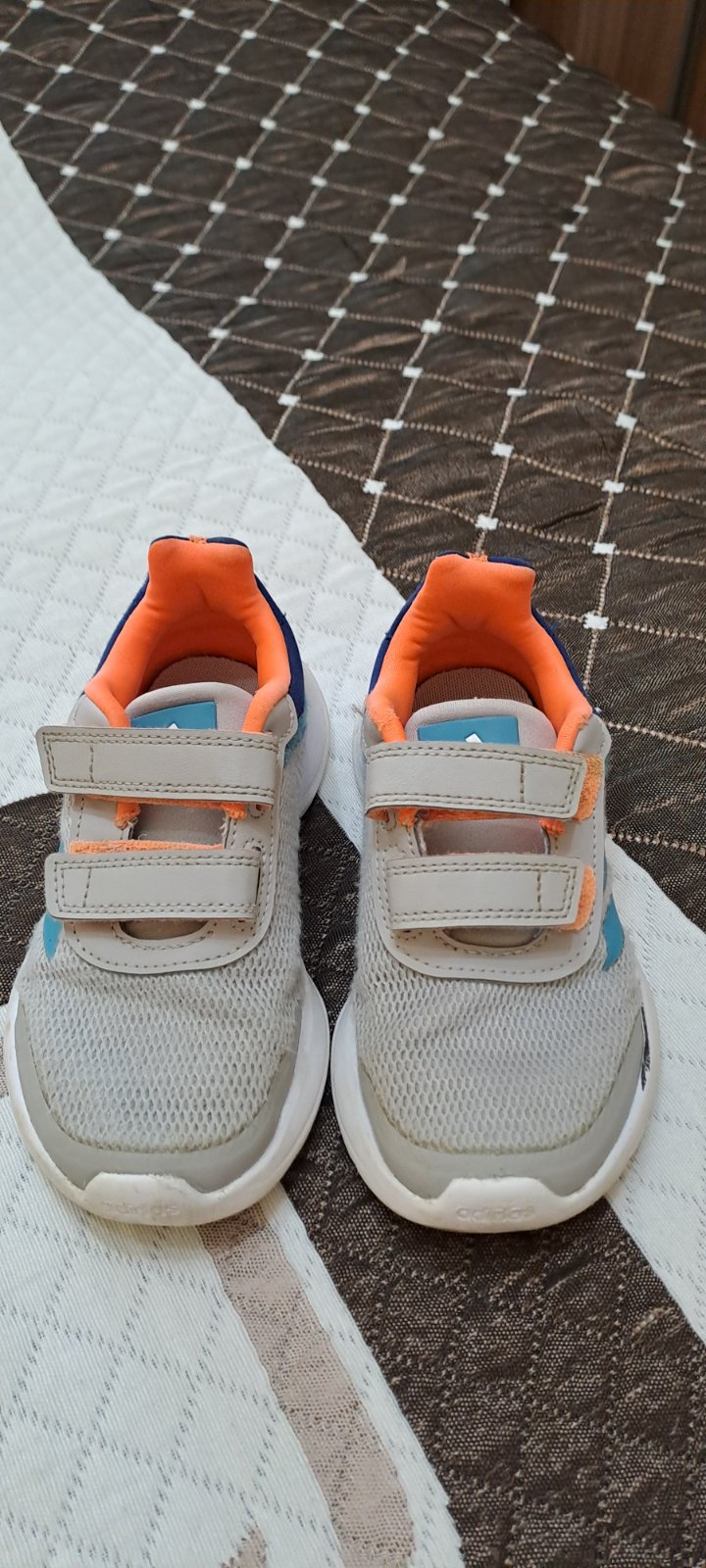 Predám používané botasky Adidas, veľkosť 29. Nosené, chyby od používania na fotke, inak plne funkčné. Snáď ešte poslúžia. Cena 5€ + poštovné