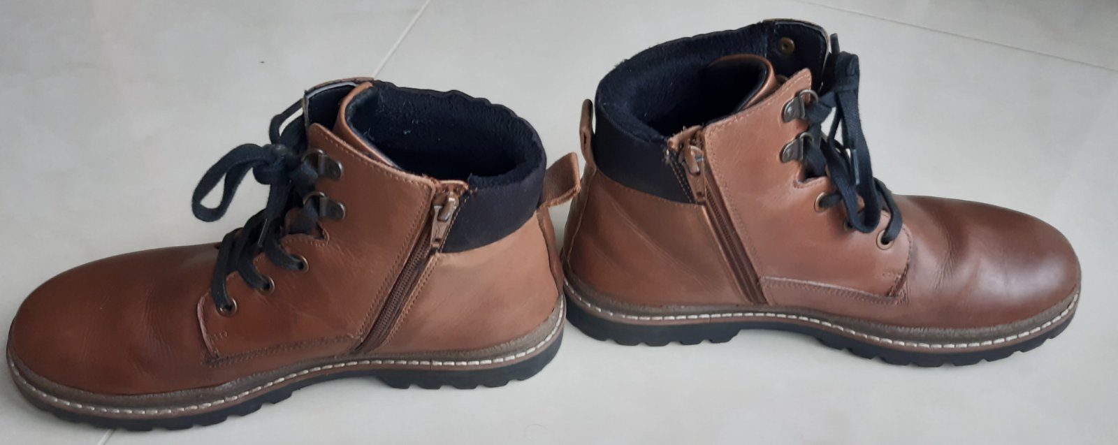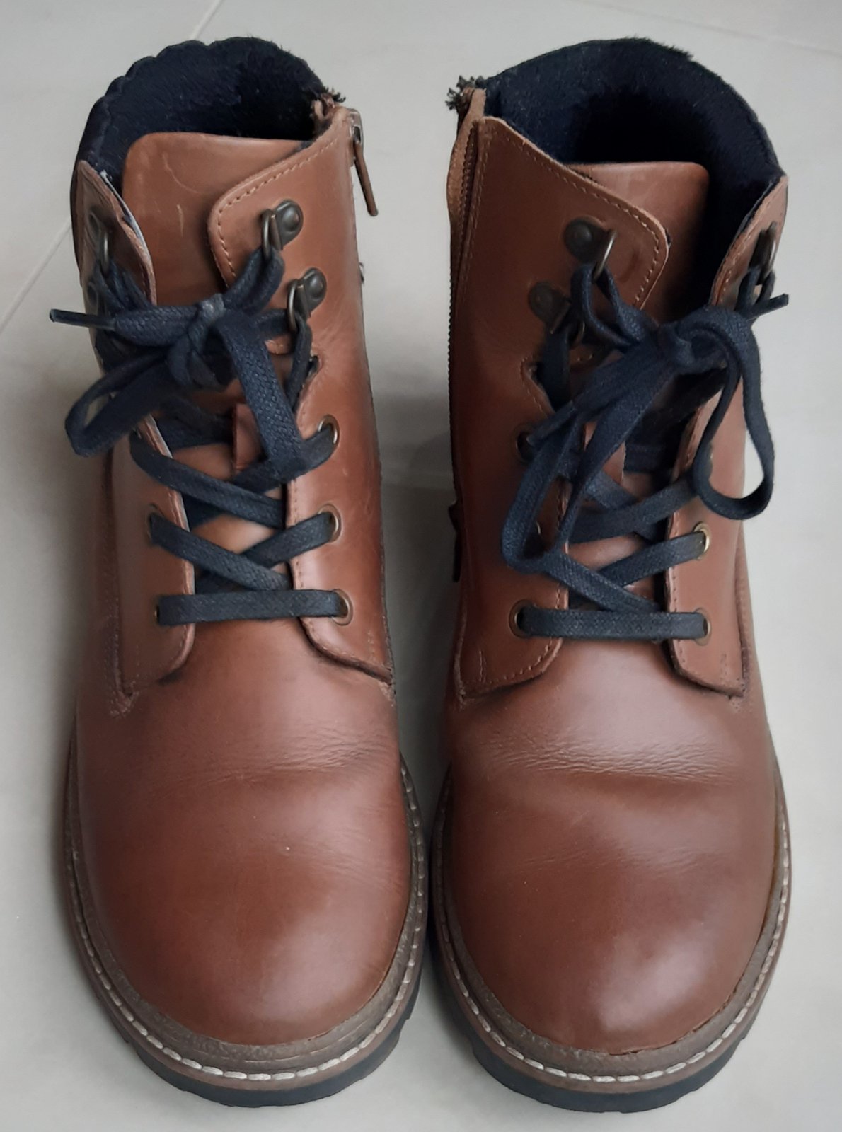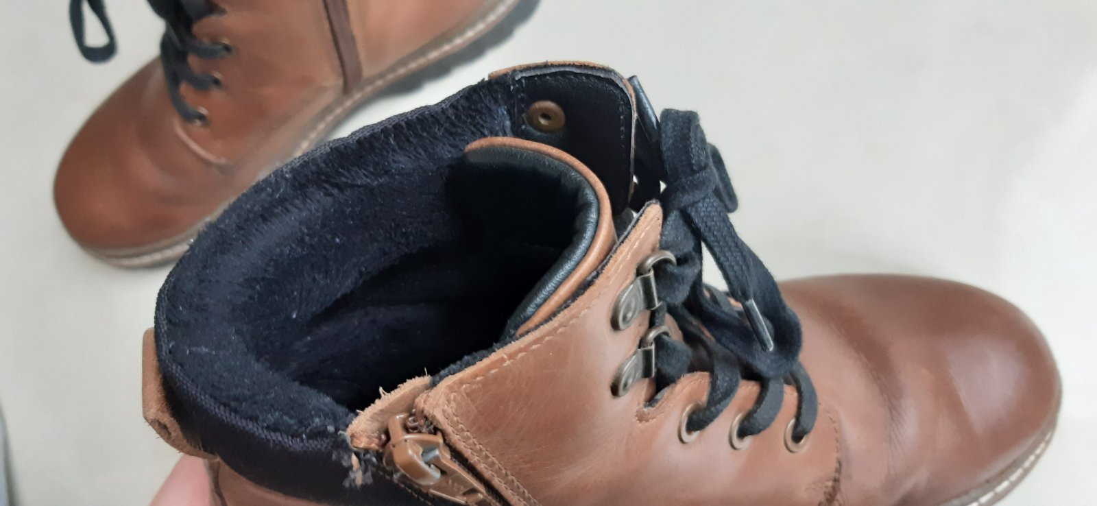 Nosené kožené topánky v zachovalom stave, veľ.38, vnútri zateplené jemným kožúškom, pohodlné a jednoduché obúvanie vďaka zipsu na boku.