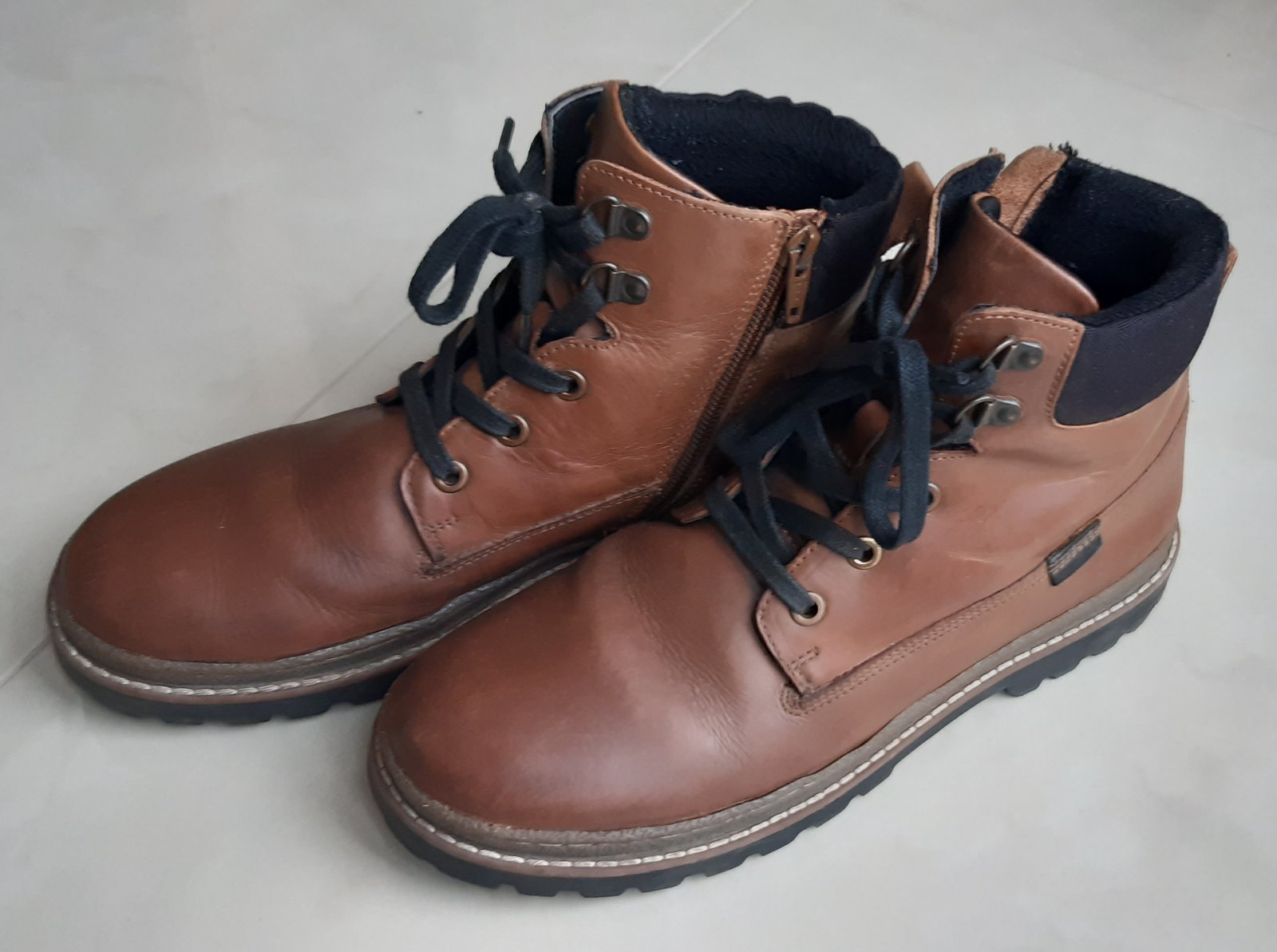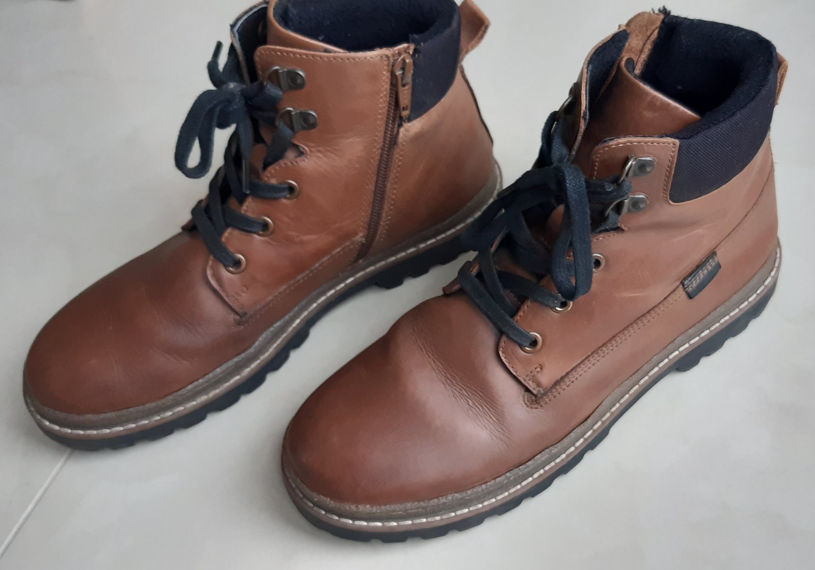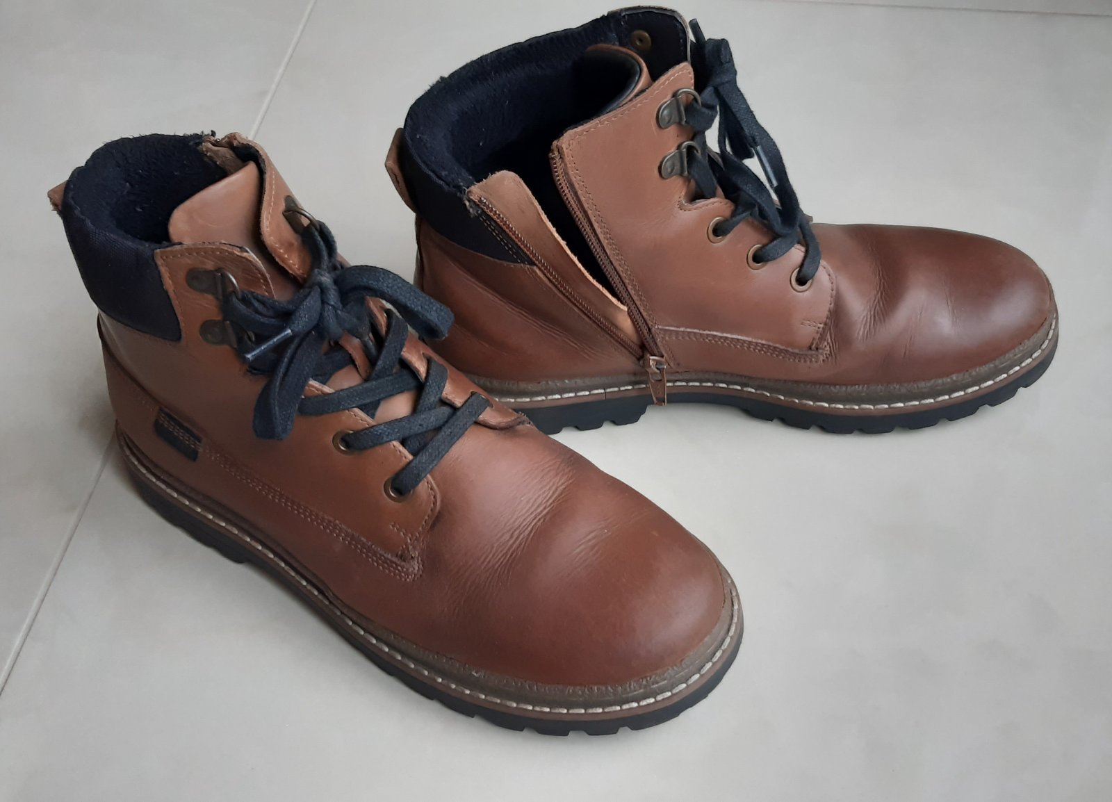 Nosené kožené topánky v zachovalom stave, veľ.38, vnútri zateplené jemným kožúškom, pohodlné a jednoduché obúvanie vďaka zipsu na boku.