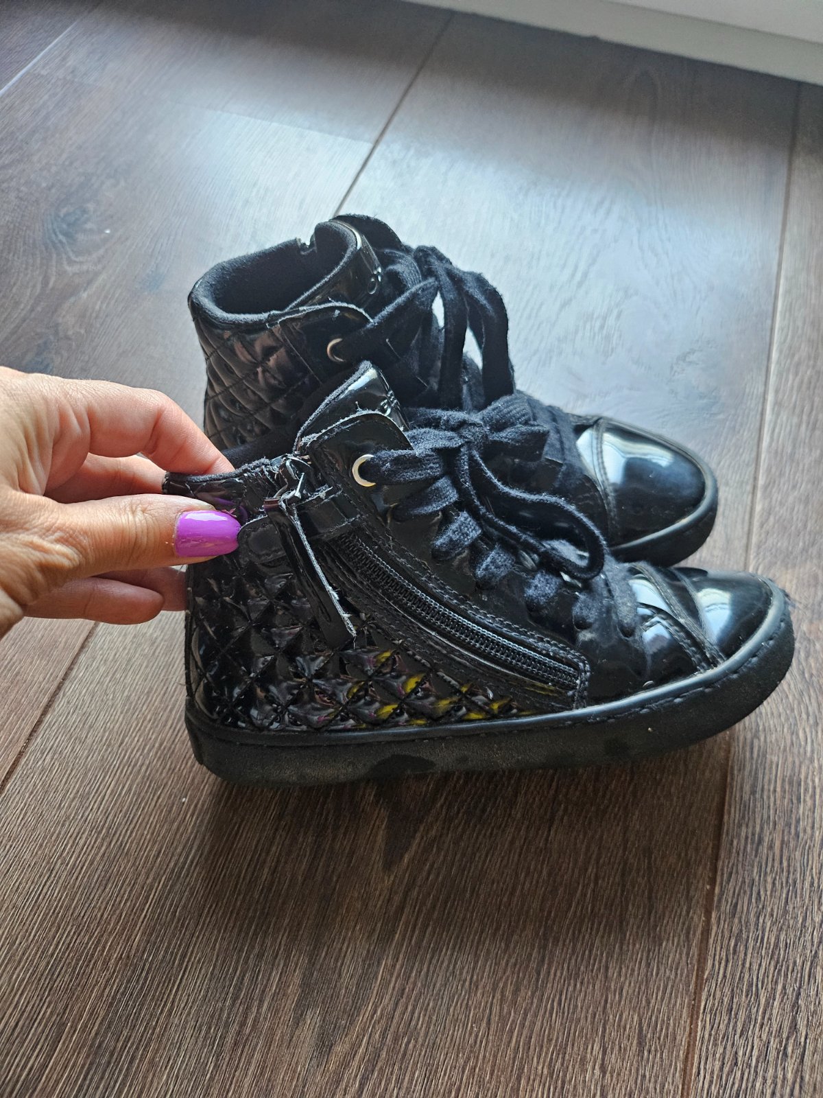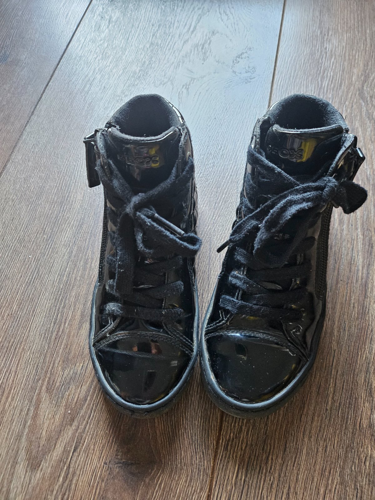 Cierne lakovane topanky Geox na snurovanie, vn.dlzka 19cm (vid foto). Par krat obute. Cena + posta