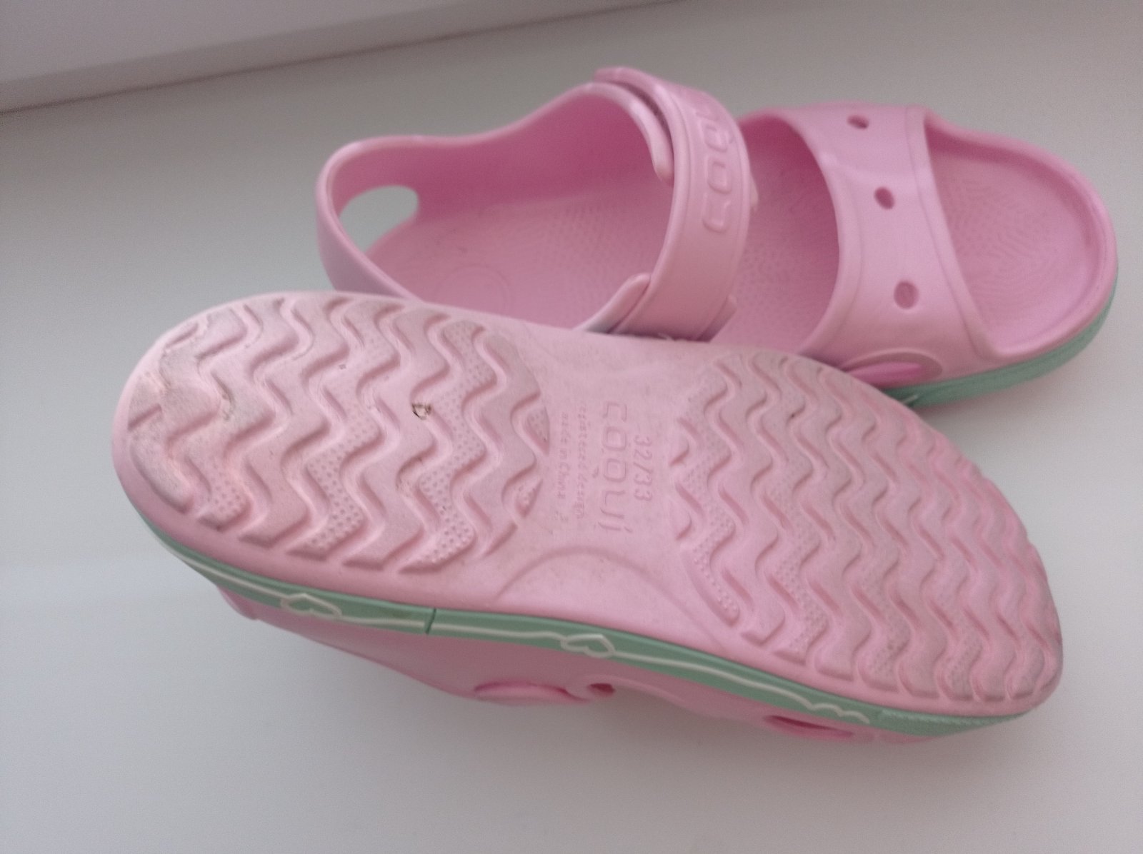 Krasne, pohodlne sandalky/slapky na nosenir na sucho saj k vode, bezne znamky nosenia vidno velmi jemne na bielej casti podrazky, inak v 100% stave bez poskodeni a vad