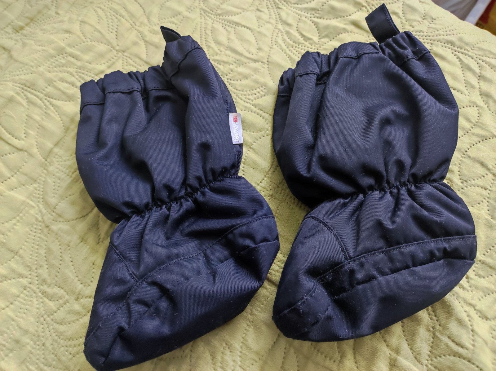 Capačky sú nové, s visačkami, nestihli sme ich ani použiť lebo noha narástla rýchlejšie ako sa ochladilo :) je to veľkosť S, vnútorná dĺžka topánky je 11,5 cm šírka 6,5 cm. Zvnútra zateplené flís...