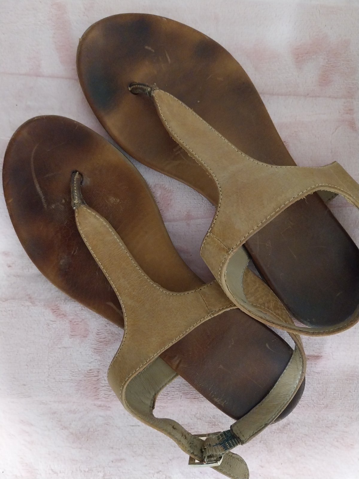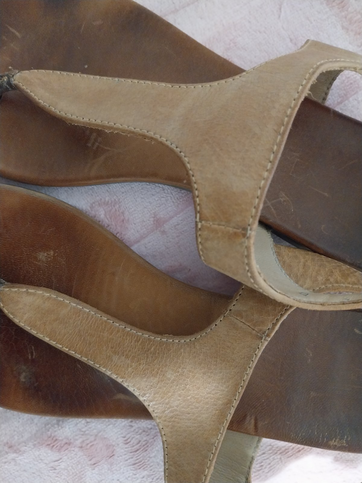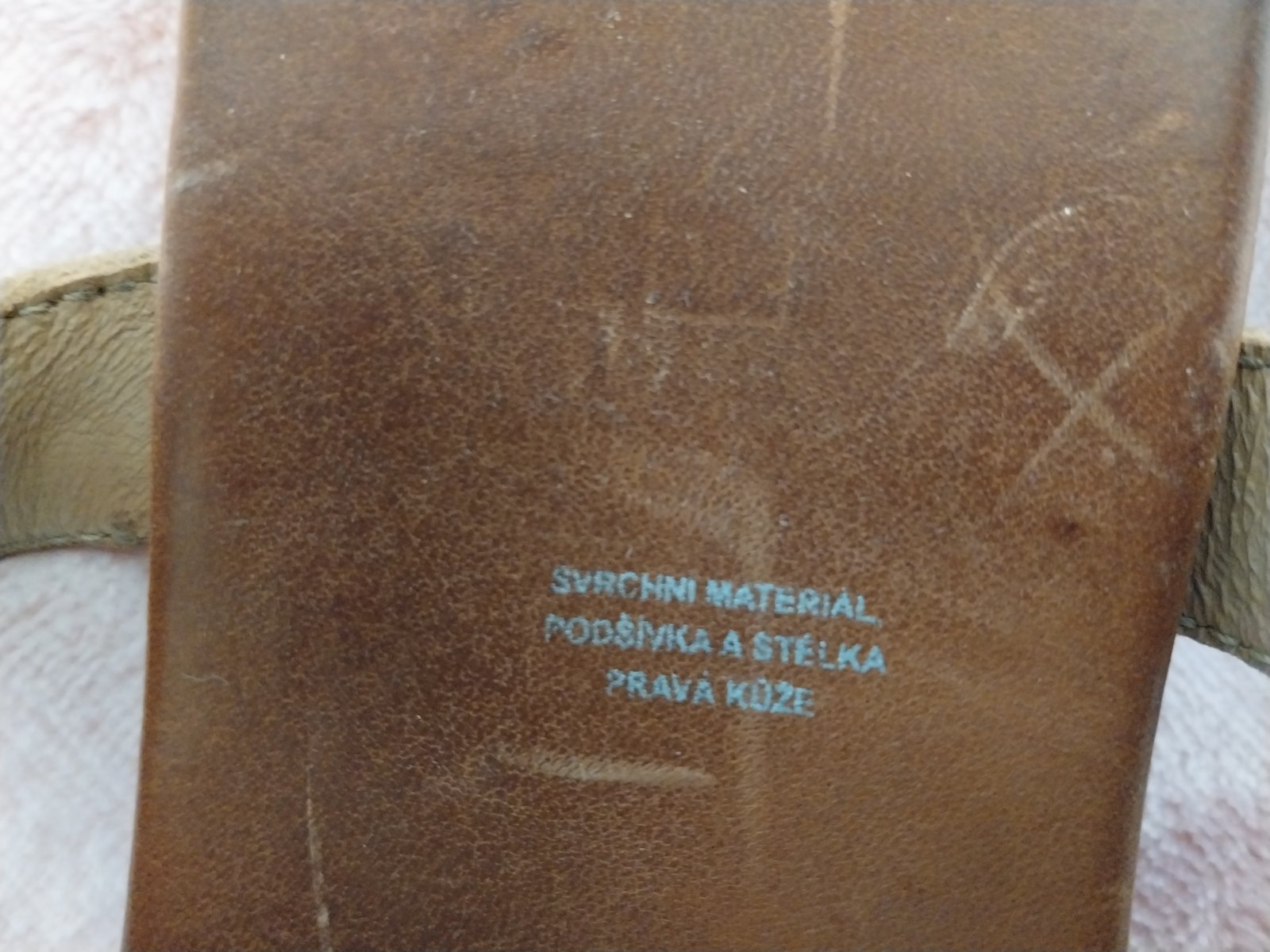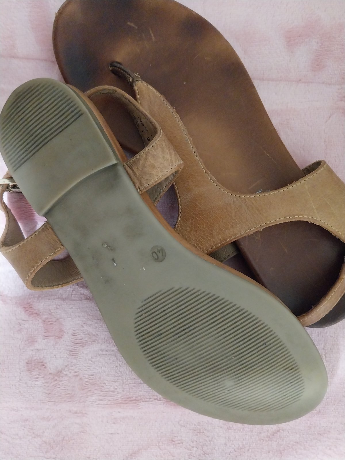 Kožené sandále - pravá koža. Nosenie vidieť len na stielke (je to koža, takže je to úplne normálne), inač v top stave. Veľkosť 40, ale sedia skôr na 39