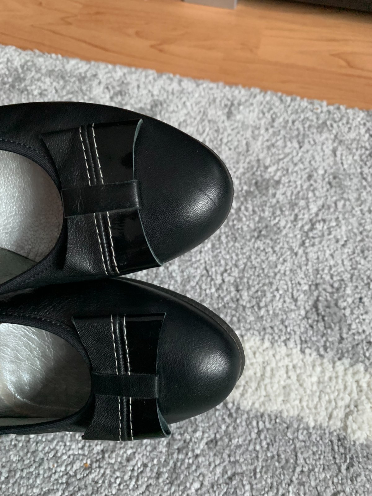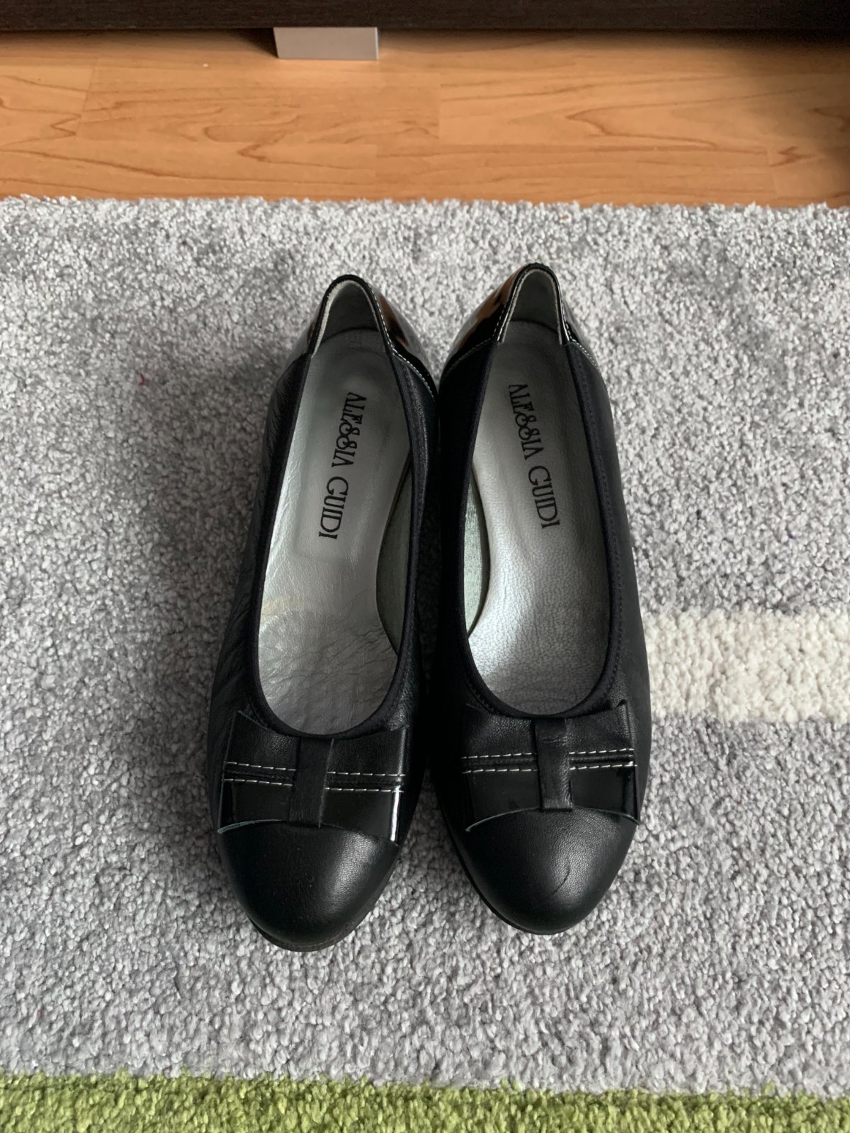 Kožené lodičky na malom opätku, mäkké, pohodlné. Veľmi dobrý stav, len vpredu na jednej malý škrabanček - viď. foto, pri nosení nevidno.