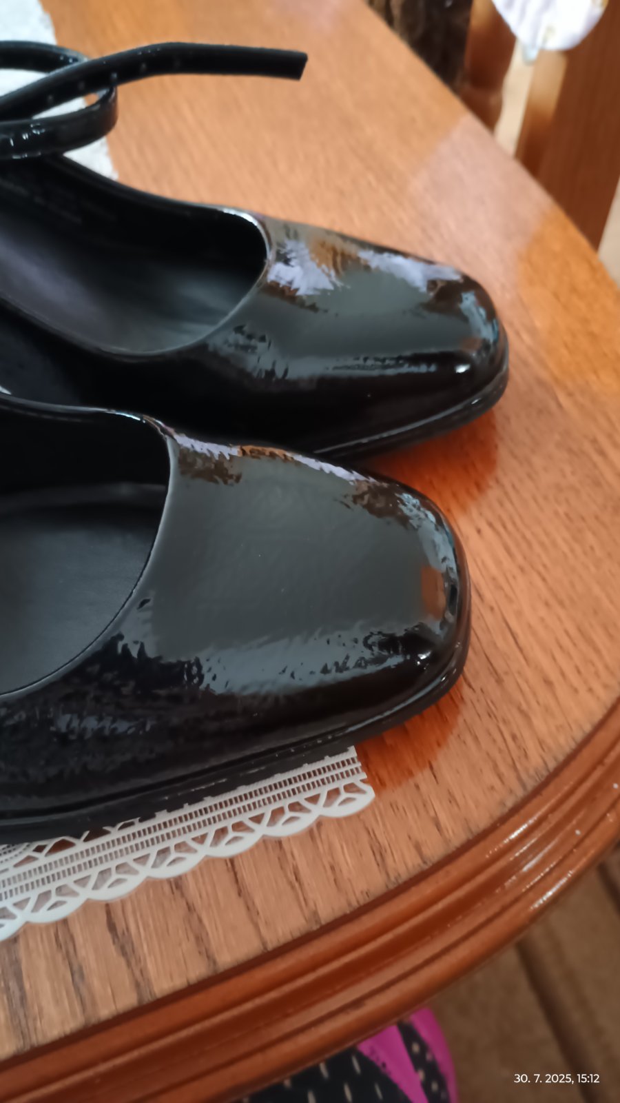 Ponúkam na predaj, síce nosené krátko, ale v top stave topánky značky Next, pohodlné ale pre mňa vysoké, vnútorná dĺžka 24,5 cm, výška opätku 8 cm. Na pravej topánke z vnútornej strany škrabance ktoré nieje vidno nakoľko topánky sú lakované