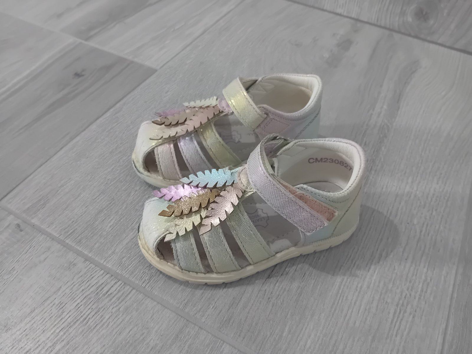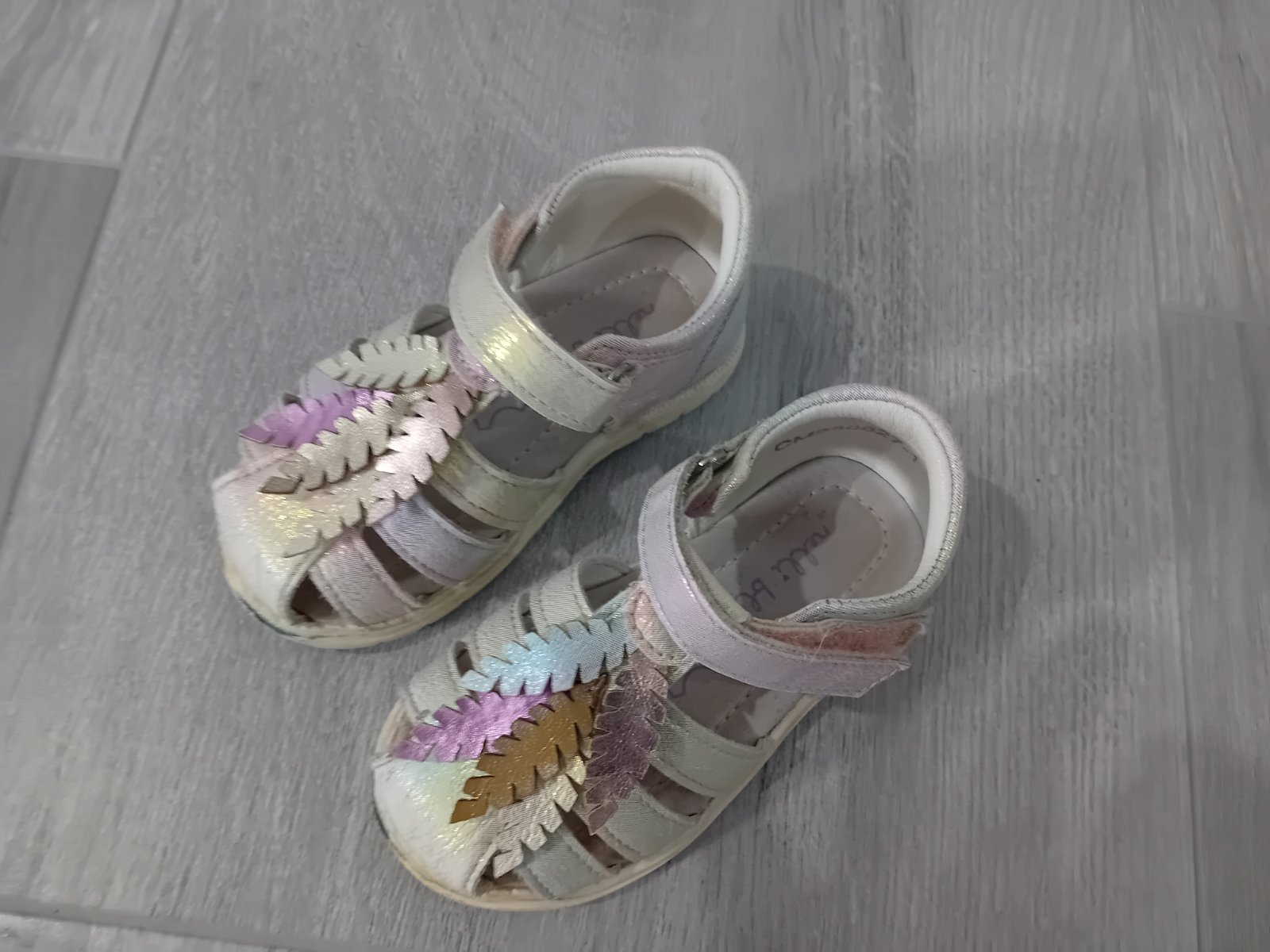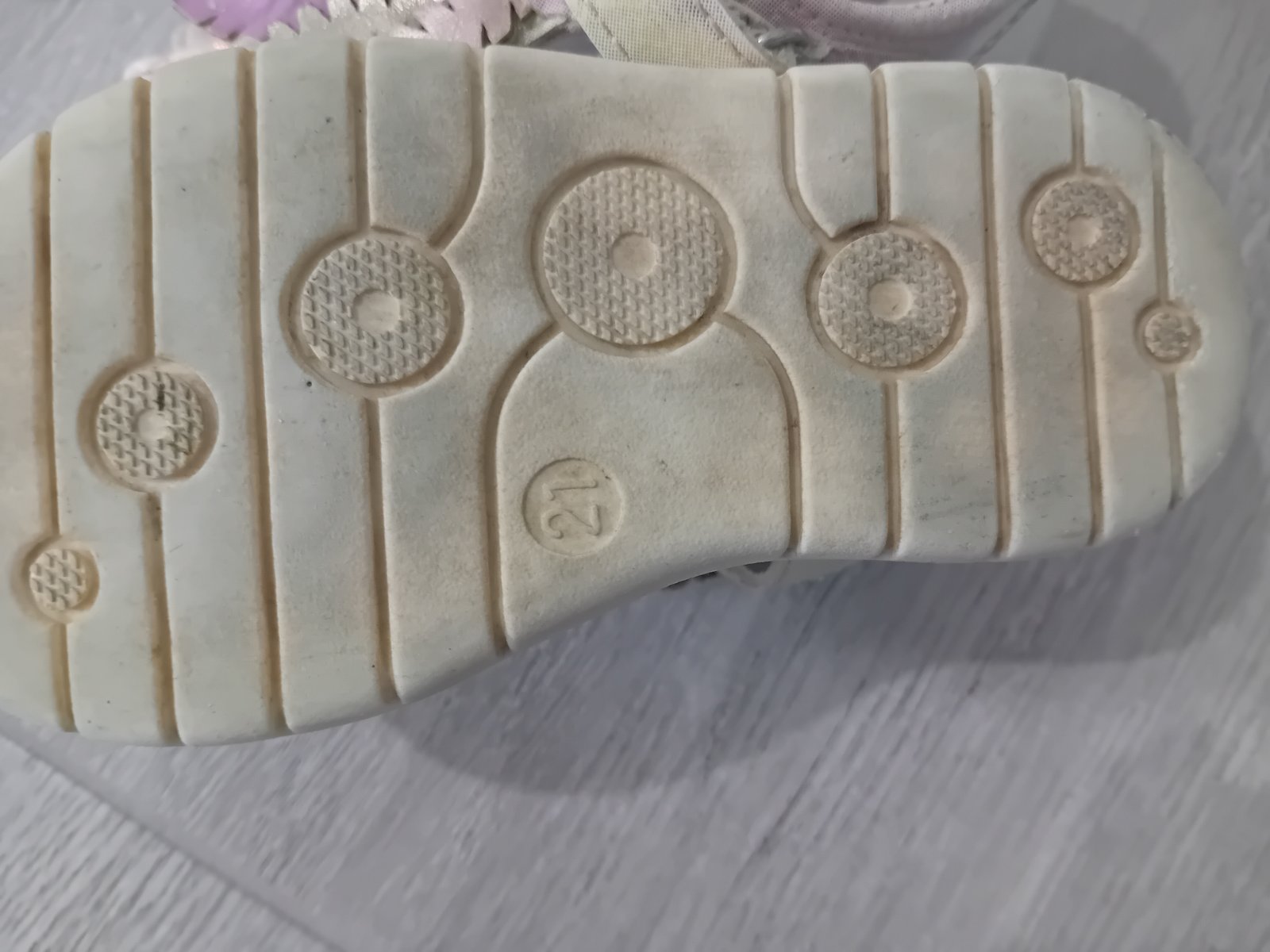 Veľkosť 21, boli super, ale sú stále neschodene, na jednej chyba tá ružová lemovacia ružová páska,alebo čo to je 😁. Sú super v tom, že sa nožička vetrá. Cena 2,50€